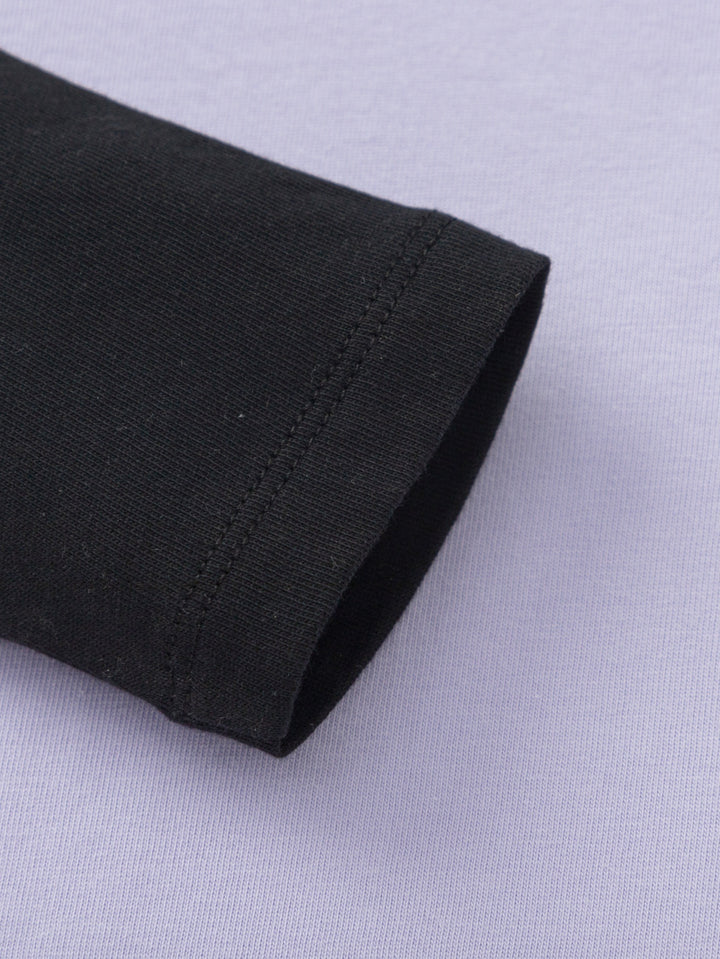 النمط والمواد: تي شيرت بلوك ألوان عالي التباين مع أكمام راجلان الكلاسيكية. 190G 100 ٪ من القطع القطن أحادية الوجه ، ناعمة ، تنفس ، متينة للطبقة الداخلية الخريف/الشتاء.