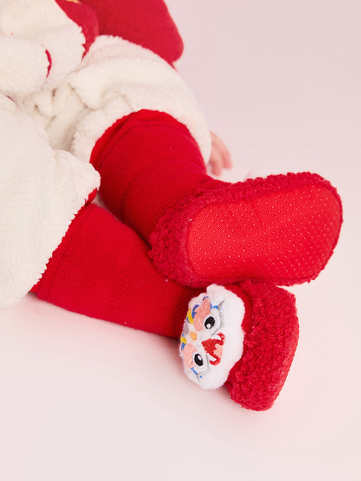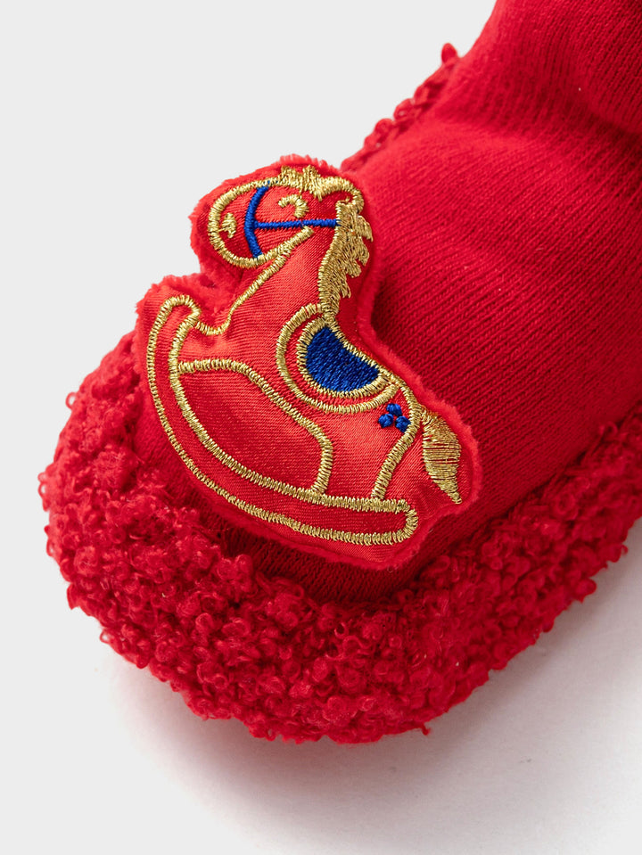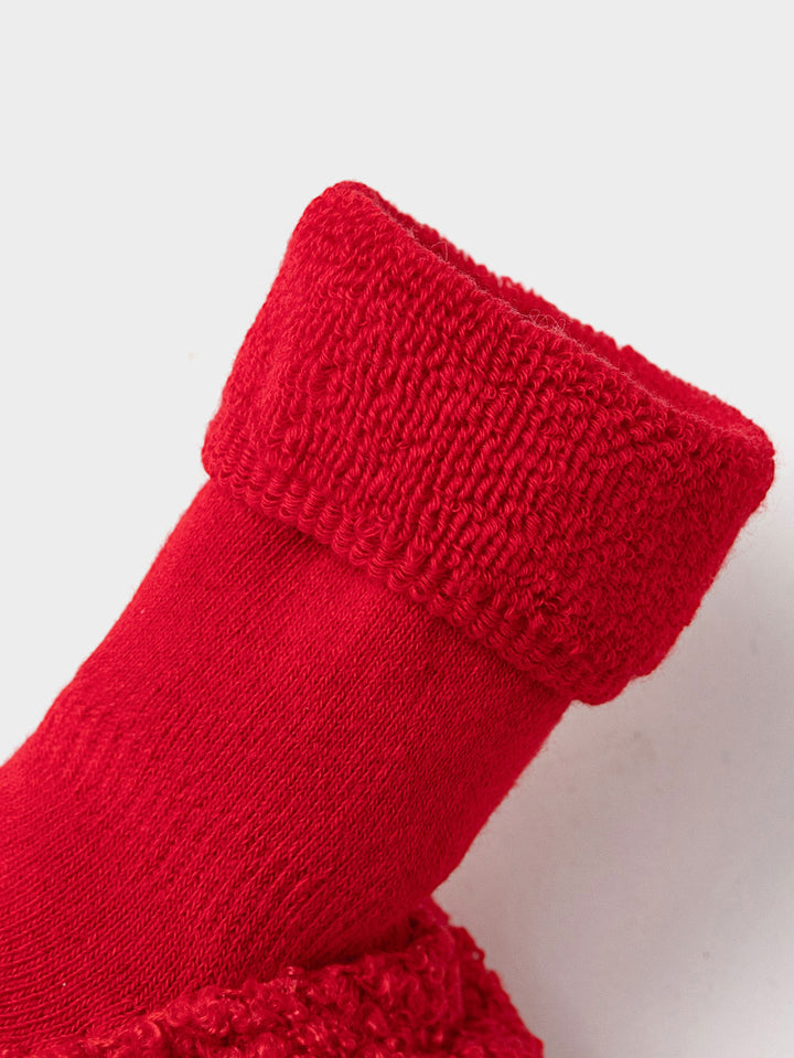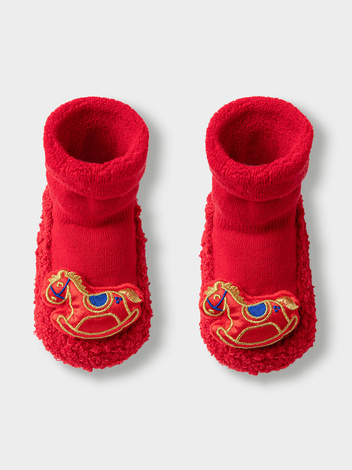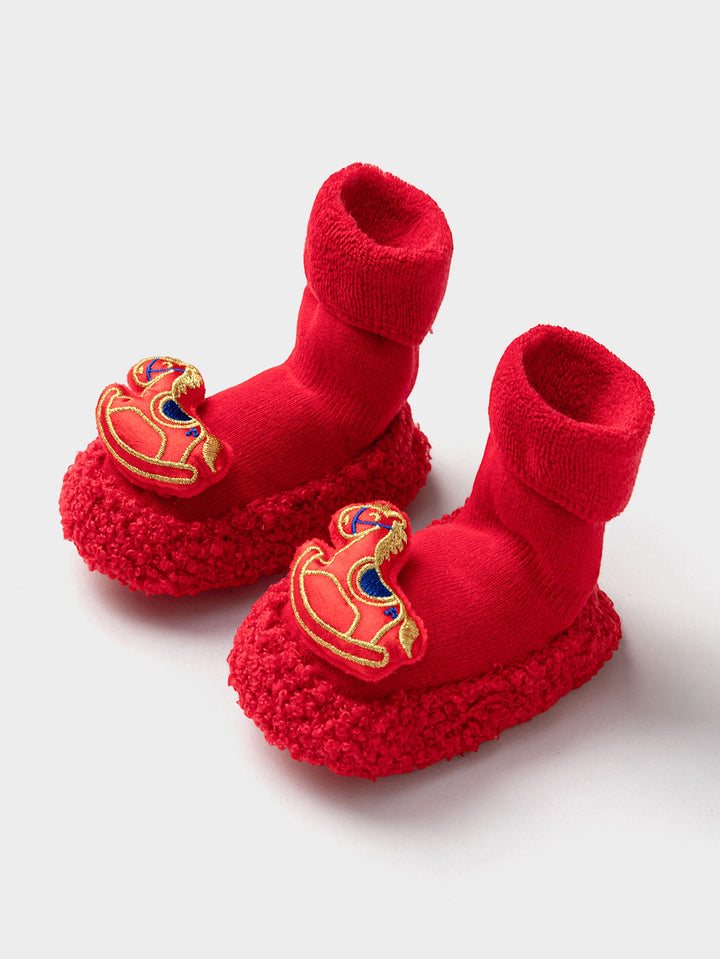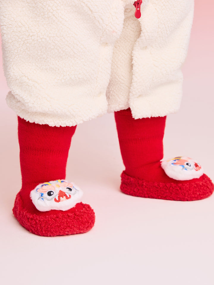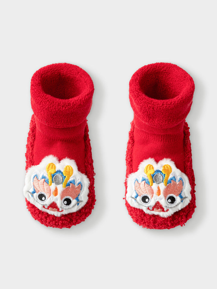 Main Selling Point: New Year's Fortune Floor Socks symbolize "New Year's Fortune, Blessings and Blessings." New Year, New Look, New Year's Fortune Floor Socks, bring good luck to your baby; exquisite and beautiful, with a rich texture. Secondary Selling Points: 1. Material: Selected Bala high-grade combed cotton, using compact spinning technology. Compared to ordinary combed cotton, this yarn has less hairiness, higher strength, a smoother surface, and excellent pilling resistance and abrasion resistance. The full terry thickness makes it suitable for winter wear, comfortable, fluffy, sweat-wicking and warming. Made of a golden ratio of Lycra and spandex, it has high resilience, is more comfortable to wear, and is not easily deformed. The super-elastic screw thread does not squeeze the feet. 2. Version: Made of full terry + spliced leather sole material, it is warm and comfortable; the sock cuff design does not squeeze the ankles to prevent it from falling off; it is comfortable to wear without any restraint; Teddy velvet spliced leather + non-slip thickened sole; it is safe and comfortable, does not fall off or squeeze, is non-slip and wear-resistant; the boneless hand-sewn toe has no bulge when worn and does not rub the toes. The design of the height above the ankle meets a variety of wearing needs; it can be high-top or cuffed, with two heights and two wearing methods, which is more in line with the wearing needs of babies, with higher wrapping, and is not easy to slide down or fall off. 3. Pattern: It means "New Year's good luck and full of blessings". New Year, new atmosphere, baby's good luck. The three-dimensional doll shape doll is smart, festive and cute