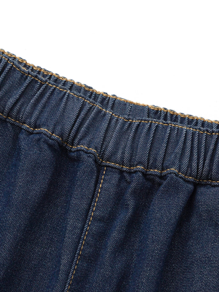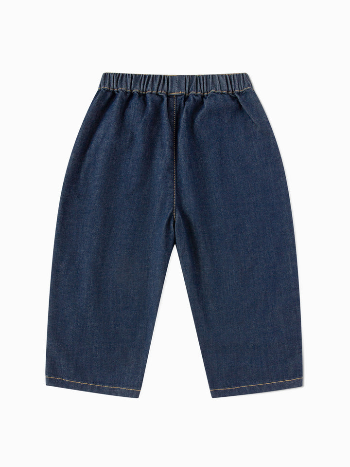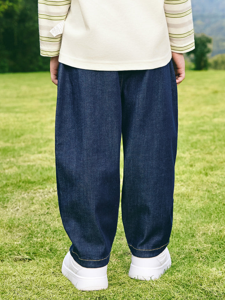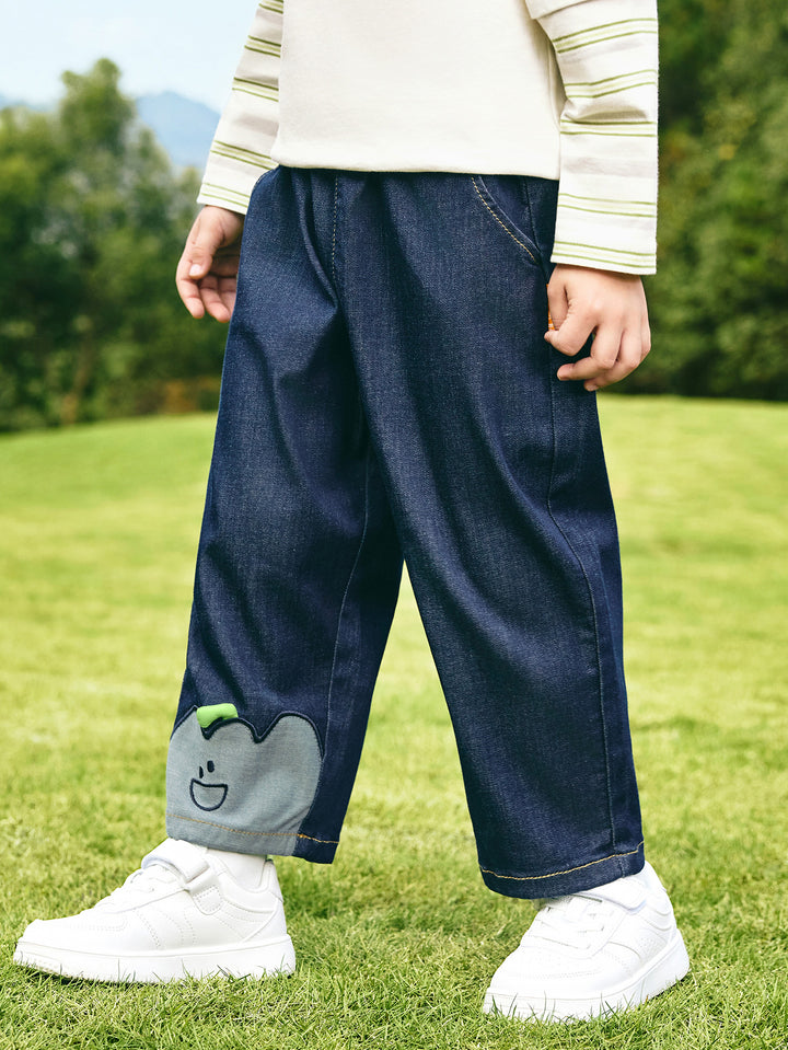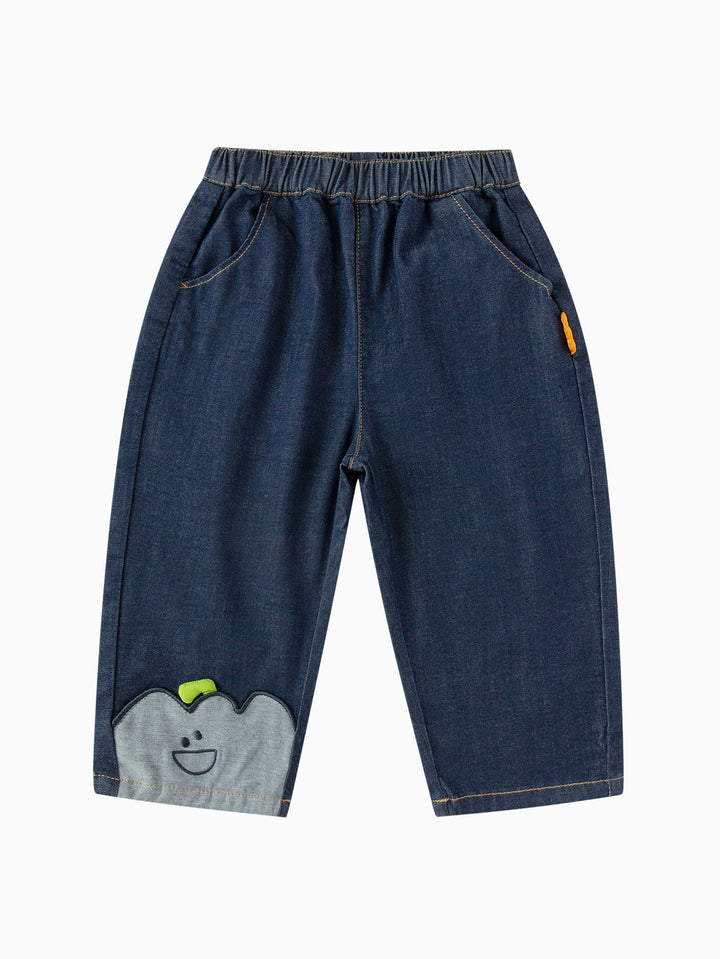 Designed for active babies, these loose-fitting carrot-style pants are made from ultra-soft, skin-friendly denim for a snug, itch-free fit. The four-dimensional stretch allows for flexible running, jumping, and tumbling, protecting your child's every step of the way. The creative, semi-3D pepper pattern at the hem, inspired by natural fruit and vegetable motifs, stimulates cognitive interest while cleverly concealing ankle fat and elongating the legs. The classic primary and mid-blue colors are versatile and can be paired with a T-shirt for a lively school day, a hooded sweatshirt for playtime, or a perfect holiday outfit for family. The playful pepper design will make babies love these pants, while the soft fabric gives mothers peace of mind, ensuring they'll accompany their child through every growing moment, from school to the playground.