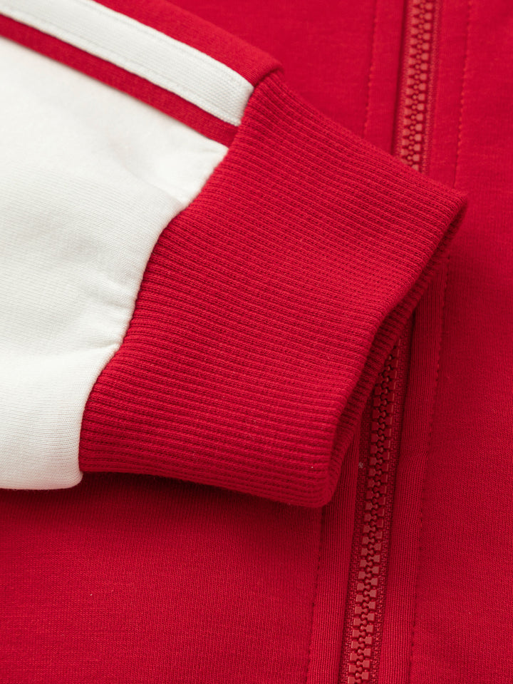 1. Fabric: Made of 280G four-way stretch air layer fabric, double-sided weaving, skin-friendly and comfortable, and will not deform after long-term washing; 2. A four-color, stand-up collar cardigan with a zipper design on the front for easy on and off. The whole piece has a color-blocked design of raglan sleeves and an exquisite floral pattern on the chest, which is simple and energetic. ; . Standard version, custom-made POLO ribbed collar, wears smartly and is a must-have item for school or attending occasions. " Fabric craftsmanship details