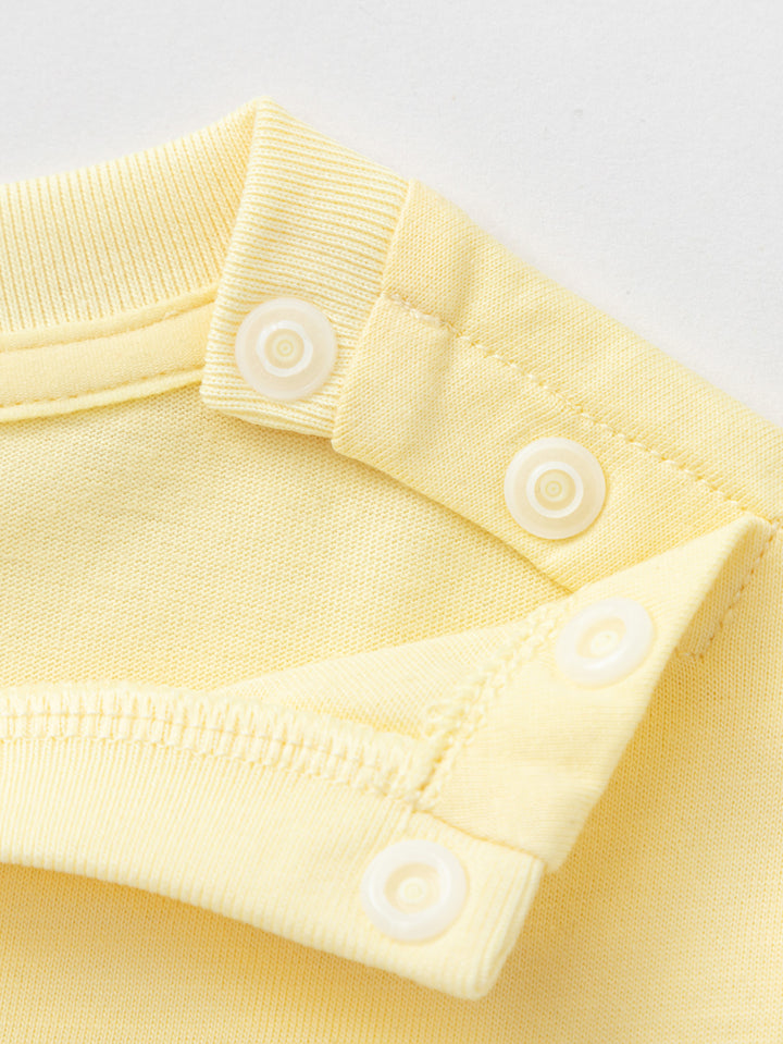 1. Farve: Denne t-shirt fås i hvidt og gult, og babyen ser livlig og sød ud, når den bærer den. 2. Style: Denne T-shirt vedtager en klassisk nedbørsversion, og det lille billeddesign på brystet er sød og alsidig. 4. sæson: Denne tykkelse er velegnet til at bære om efteråret.