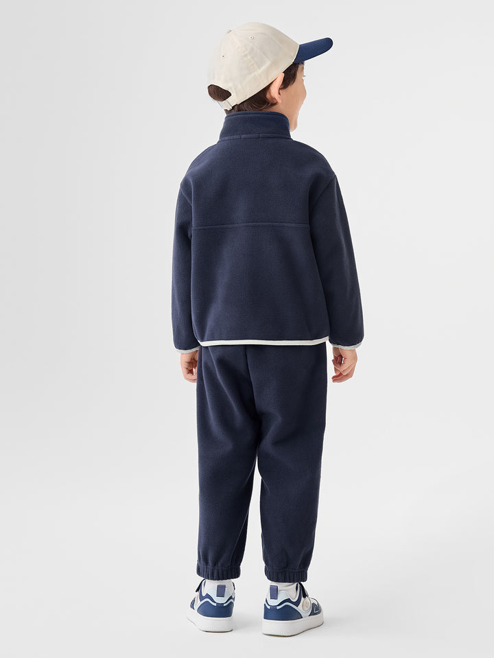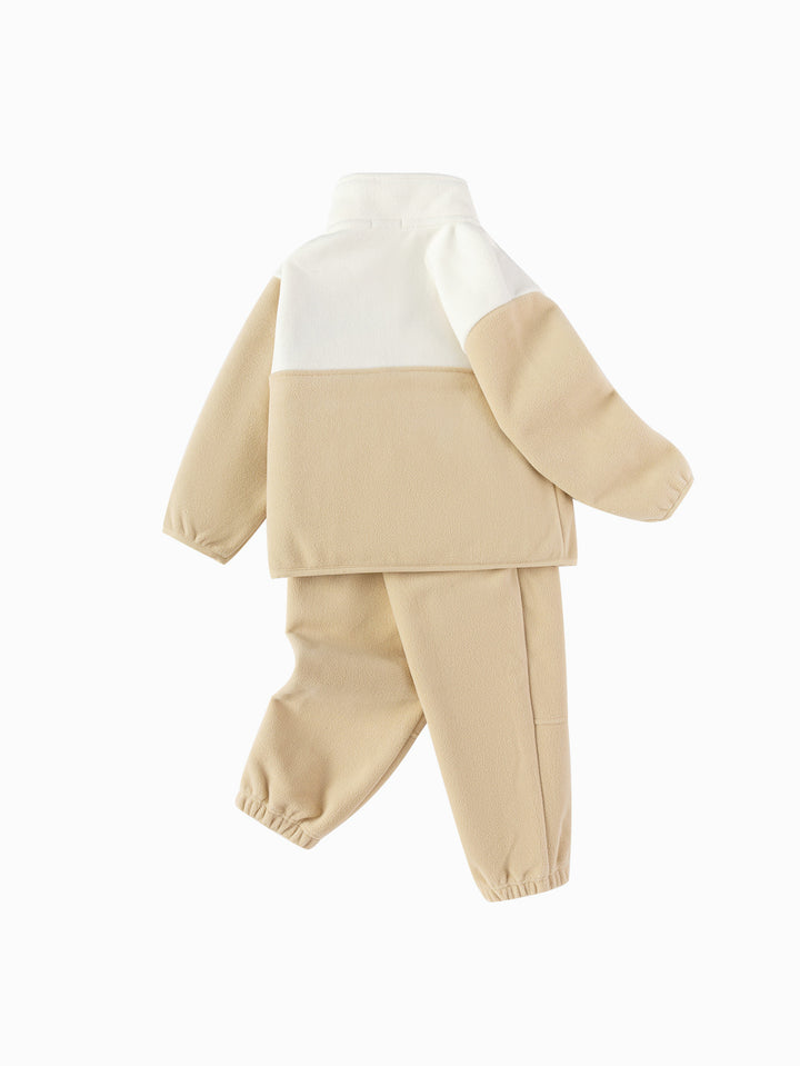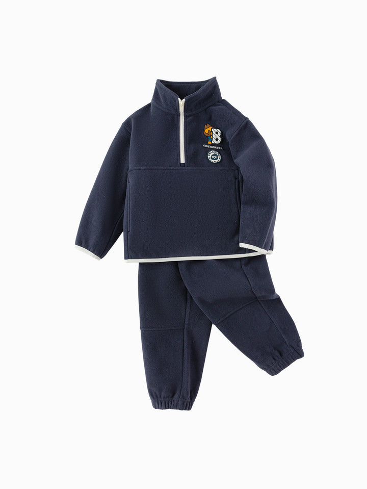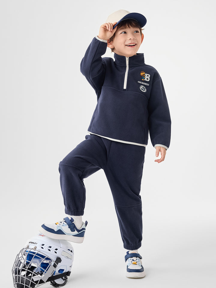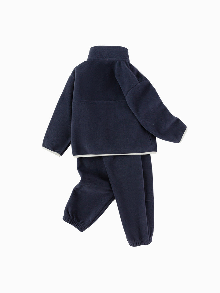 1> Set mit halbem Reißverschluss in zwei Farben: Marineblau Ton-in-Ton und Khaki-Creme-Kontrast, das kleinen Jungen einen raffinierten und stilvollen Look verleiht.
