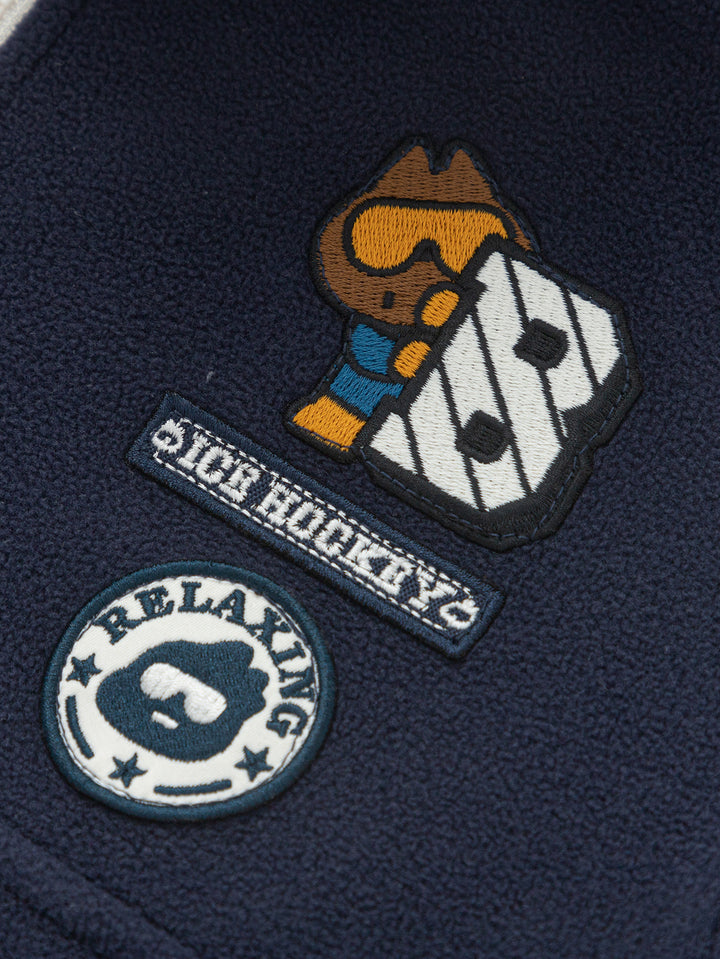 4> Auf der Vorderseite befindet sich ein Eishockey-Welpenabzeichen im Comic-Stil, das für College-Charme sorgt.