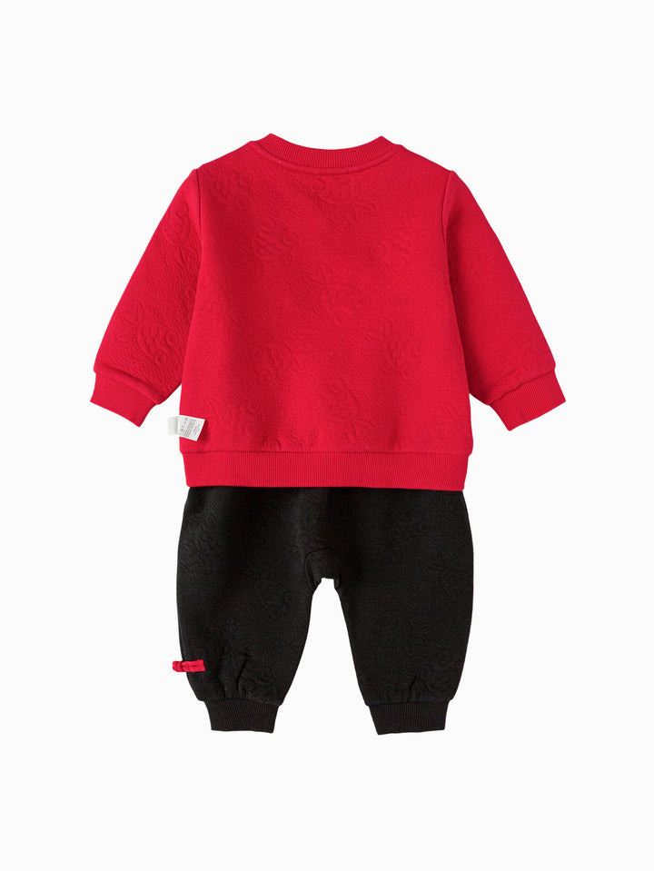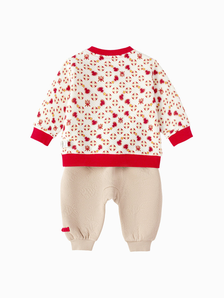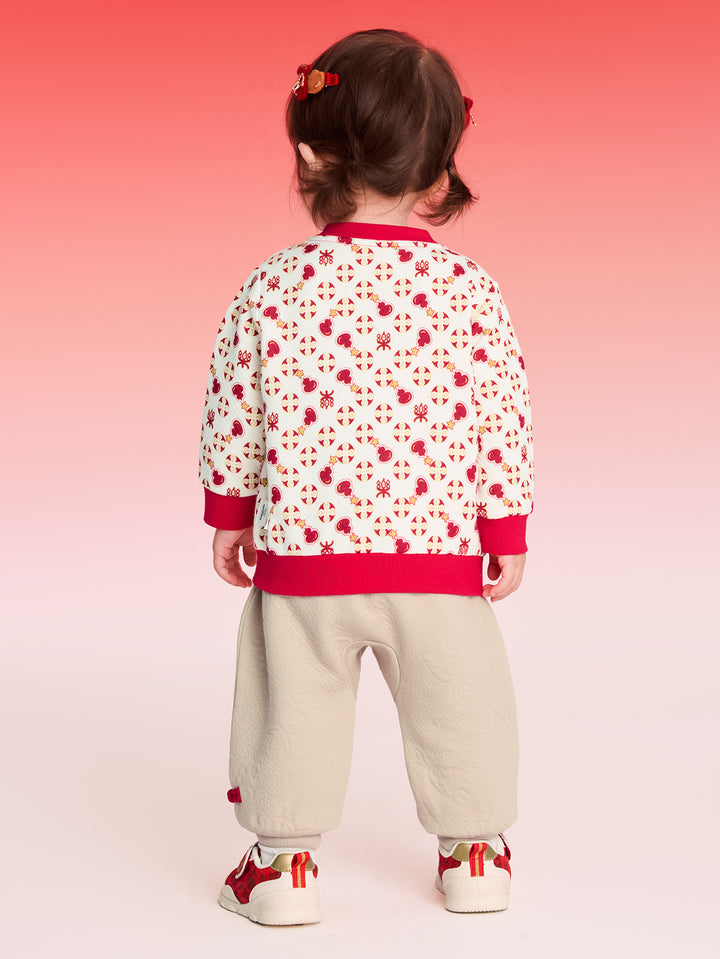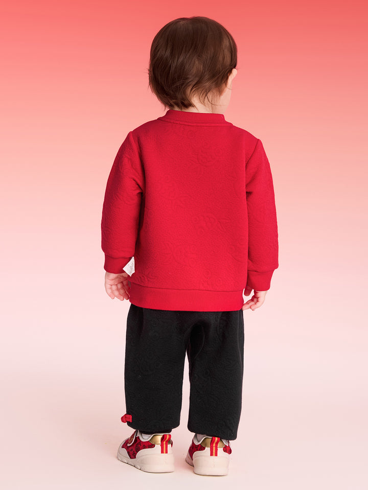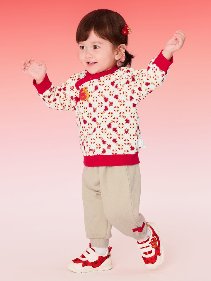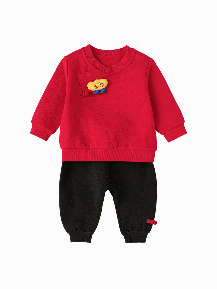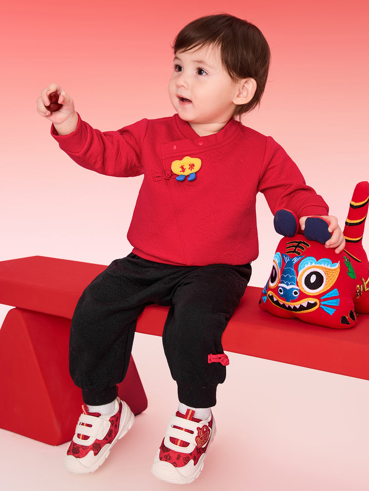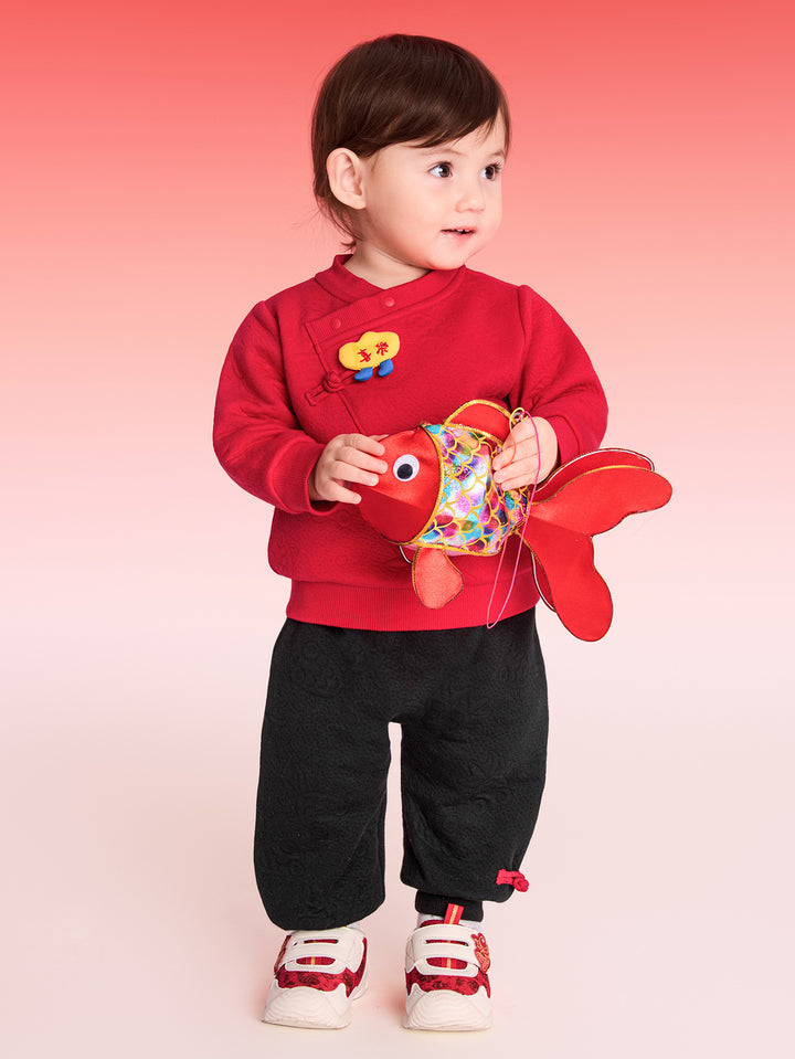 1. Farbe: „Happiness Comes Instant“ arbeitet mit dem jungen Illustrator Luo Yiren zusammen, um die fröhliche Hot-Pot-Szene aus einer kindlichen Perspektive darzustellen. Auf der Leinwand verwandelt sich ein dampfend heißer Topf in ein buntes Pony. Als eines der chinesischen Sternzeichen symbolisiert das Pferd Schnelligkeit, Fortschritt und Glück. Das Wortspiel „Glück“ in chinesischen Schriftzeichen vermittelt einen herzlichen Segen. 2. Stil: Ein einfaches, leicht zu tragendes Sweatshirt-Set mit einem überlappenden Rippkragen im chinesischen Stil für stilvolle Wärme. Stoff: 230 g doppelseitiger Jacquard-Steppstoff für Komfort, Weichheit und hautfreundlichen Komfort. Geben Sie Ihrem Baby die beste Pflege. 3. Kombination: Geeignet zum Tragen über einer roten oder dunkelblauen Steppjacke. 4. Jahreszeit: Geeignet zum Tragen als Basisschicht im späten Winter und frühen Frühling oder als eigenständiges Kleidungsstück im Herbst.