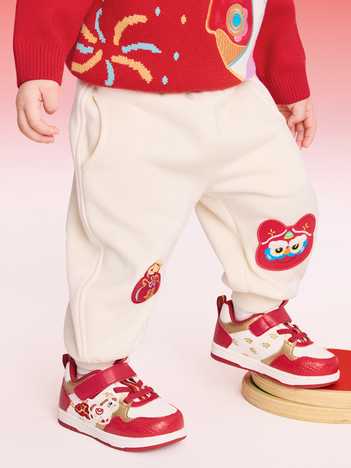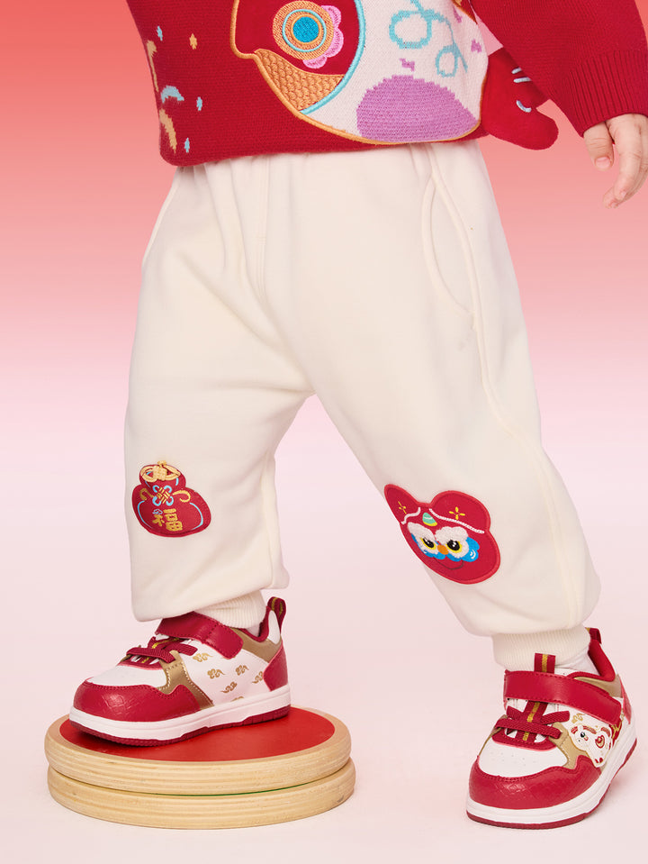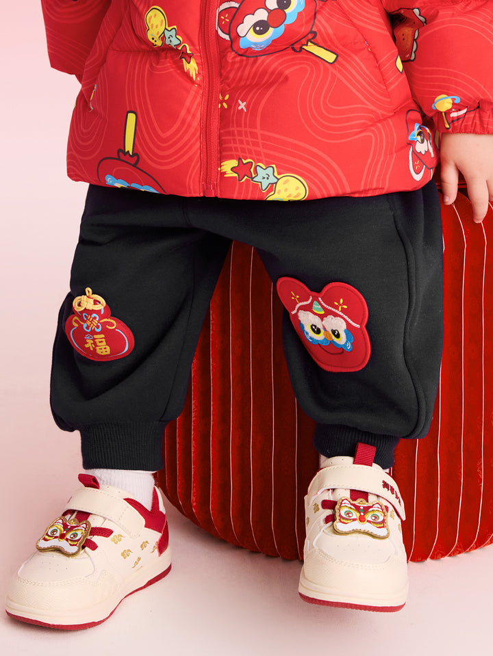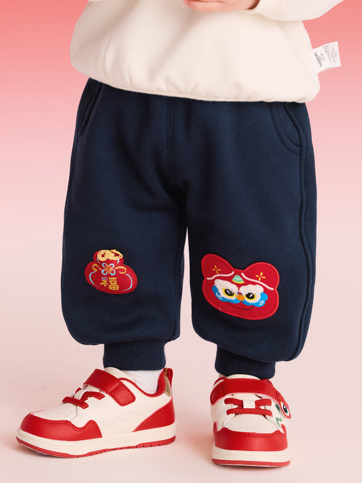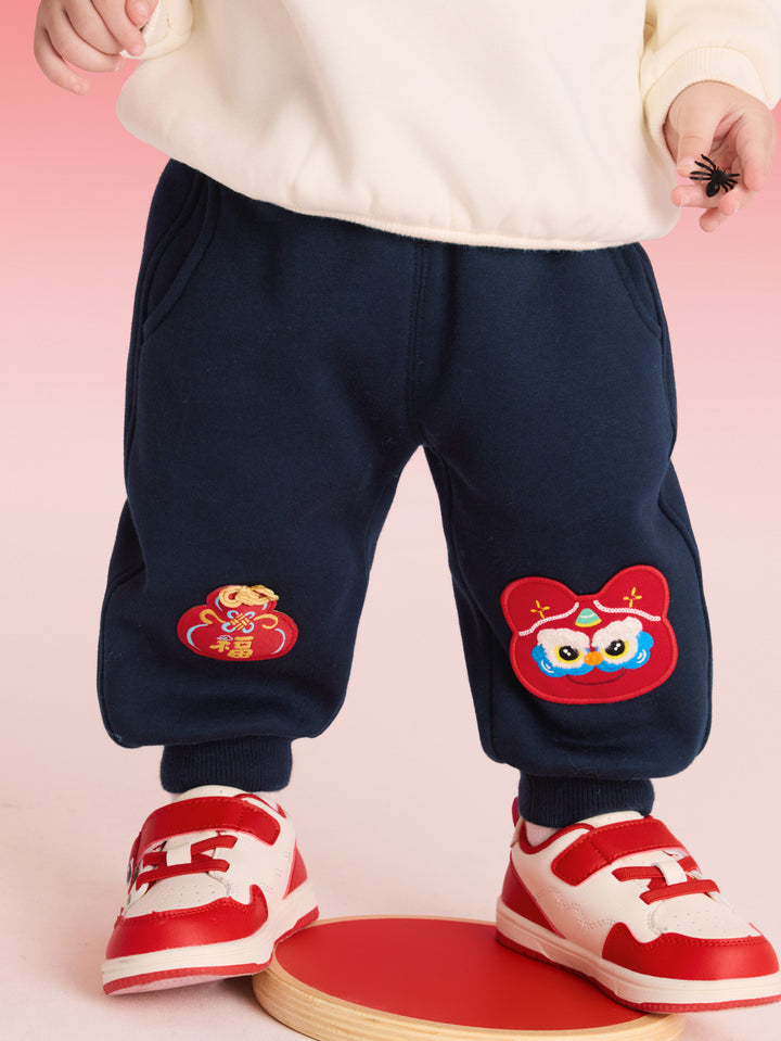 Stoffmaterial: Die innere Schicht aus hochgewebtem, gebürstetem Stoff ist flauschig und speichert die Wärme, während die äußere Schicht zart und hautfreundlich ist. Es ist für die Sicherheit von Säuglingen der Klasse A zertifiziert und kann die empfindliche Haut von Säuglingen und Kleinkindern sicher schützen. Handwerkskunst: Gerippter Bund + inneres elastisches Design, elastische Passform, ohne eng zu sein; Die Seitennähte sind nach vorne verlegt, um die Dehnbarkeit der Hüften zu optimieren, und die Dual-Purpose-Schritttechnologie (Größe 80–90) entlastet die aktive Natur des Babys. Designdetails und Bedeutung: Die dreidimensionalen Bogentaschen auf der Vorderseite sind praktisch und durchdacht, und die Nian-Tier- und Kürbismuster auf den Knien symbolisieren Glück und Glück im neuen Jahr und drücken gute Wünsche für das gesunde Wachstum des Babys aus; Festliche Szenenerweiterung: Dieses Modell kombiniert geschickt warmen Schutz mit glückverheißenden Elementen des neuen Jahres und eignet sich daher als Neujahrsgeschenk oder zum Tragen beim Besuch von Verwandten und Freunden während des Frühlingsfestes.