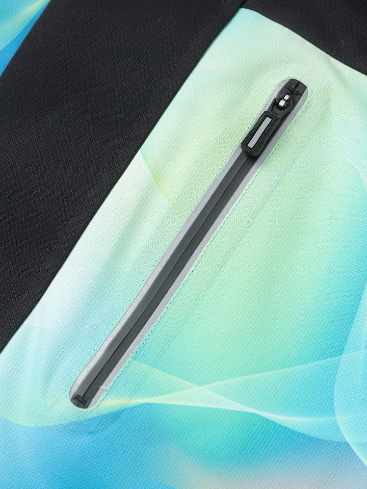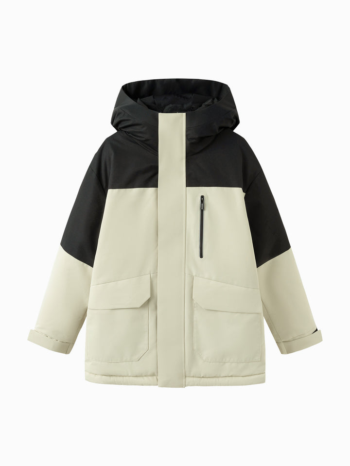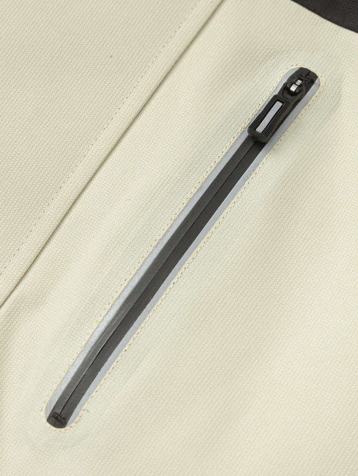 3> Detail: Linker Ärmel mit metallisch glänzendem Aufnäher, der den Outdoor-Stil unterstreicht.