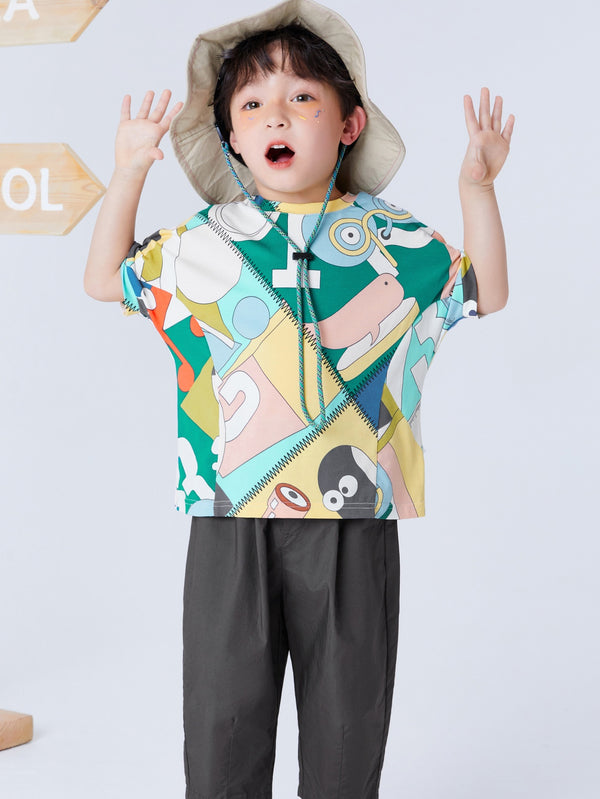 Minibala Toddler Unisex Camiseta de manga corta con estampado lindo, transpirable y de secado rápido para padres e hijos, de verano