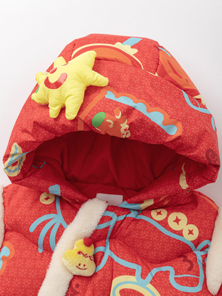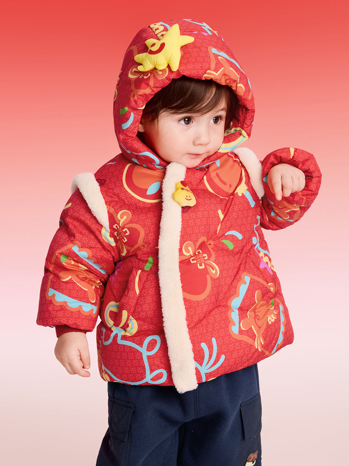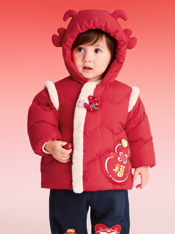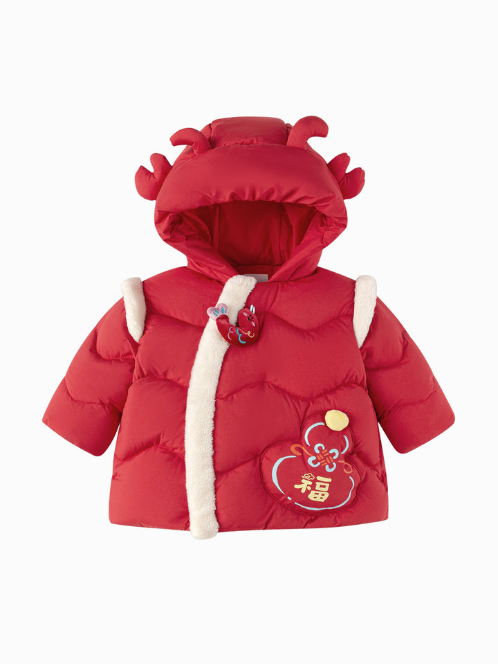 1. Nueva chaqueta de plumas de estilo chino, mejorada con un diseño con capucha. El diseño de la capucha en 3D presenta: "Lucky Star", "Butterfly" y "Red" suerte. 2. ¡El adorno de piel combina adornos de piel tradicionales chinos con un estilo moderno para crear un comienzo auspicioso para el Año Nuevo!