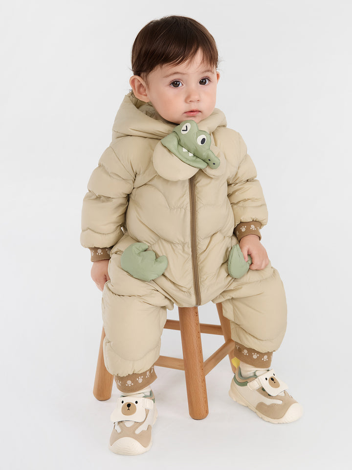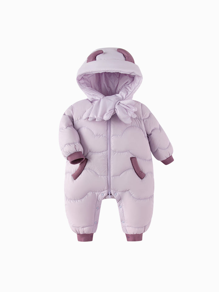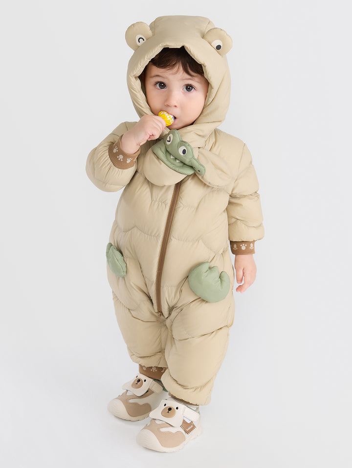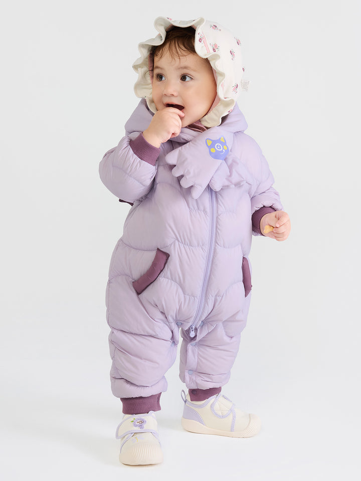 1. Color: amarillo brillante, morado y marrón son adecuados para todos los tonos de piel, creando un aspecto vibrante y llamativo. 2. Estilo: la cremallera central y el diseño del botón de la entrepierna lo hacen elegante y fácil de poner y despegar. La forma tridimensional de la capucha y el parche acolchado en el cofre son lindos y adorables, lo que se suma a la interacción padre-hijo. El diseño de la bufanda también es un punto culminante de la moda este año. La tela es de 420t tafetán de nylon (tela triple) y el relleno es 85% de pato hacia abajo a 70 g/㎡, proporcionando calidez y suavidad. 3. Emparejamiento: Capa con un traje o pantalones de suéter en el mismo color para salidas cotidianas, reuniones familiares y otras ocasiones. 4. Estacionalidad: adecuada para ropa al aire libre a fines de otoño y principios de invierno.
