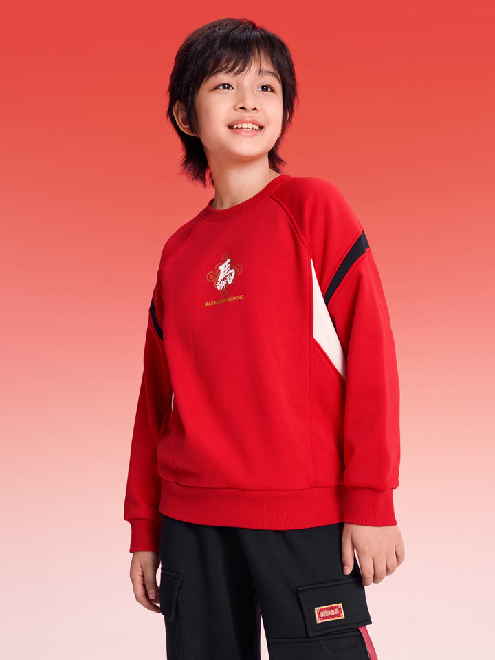 1. Tissu : le tissu du corps principal est composé d'un tissu double face de 280 g avec une base brossée, confortable, doux pour la peau, coupe-vent et chaud ; 2. Style : sweat-shirt aux couleurs contrastées, énergique et tendance, col rond, confortable et facile à porter, et pratique pour les activités ; 3. Couleur : rouge chinois, un incontournable du Nouvel An ; 4. Motif : impression artisanale, impression sur feuille d'étain dorée, exquise et texturée.