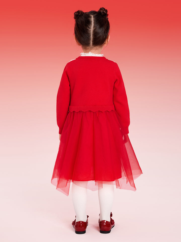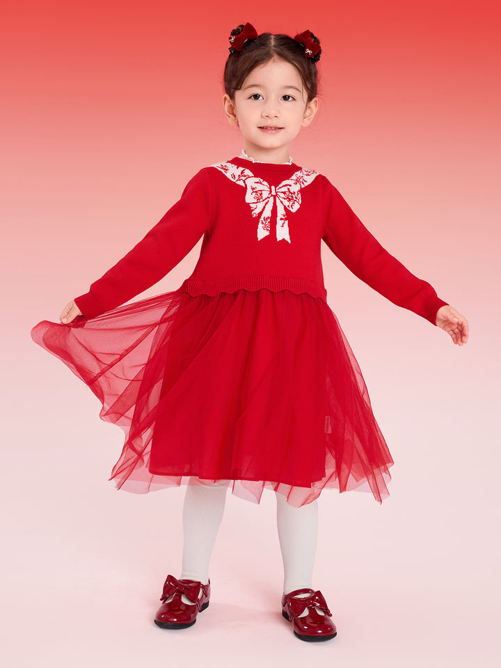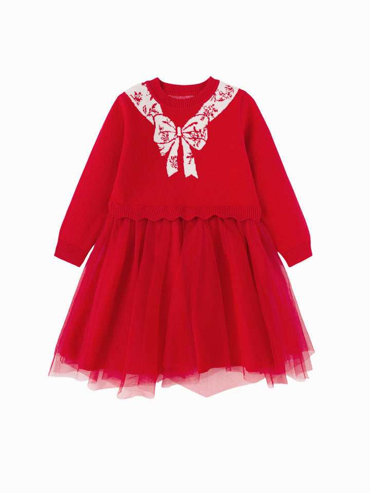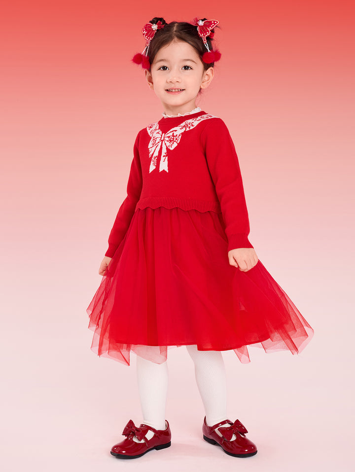 La robe jacquard avec des nœuds pleins de papillons porte-bonheur porte chance pour la nouvelle année et la réussite scolaire dans vos manches. La combinaison du pull et de la maille est confortable et dynamique, avec un tempérament doux, ce qui la rend plus confortable à jouer.