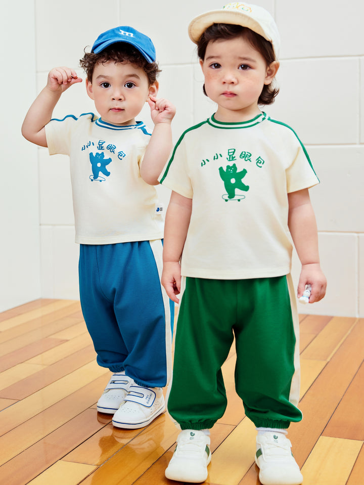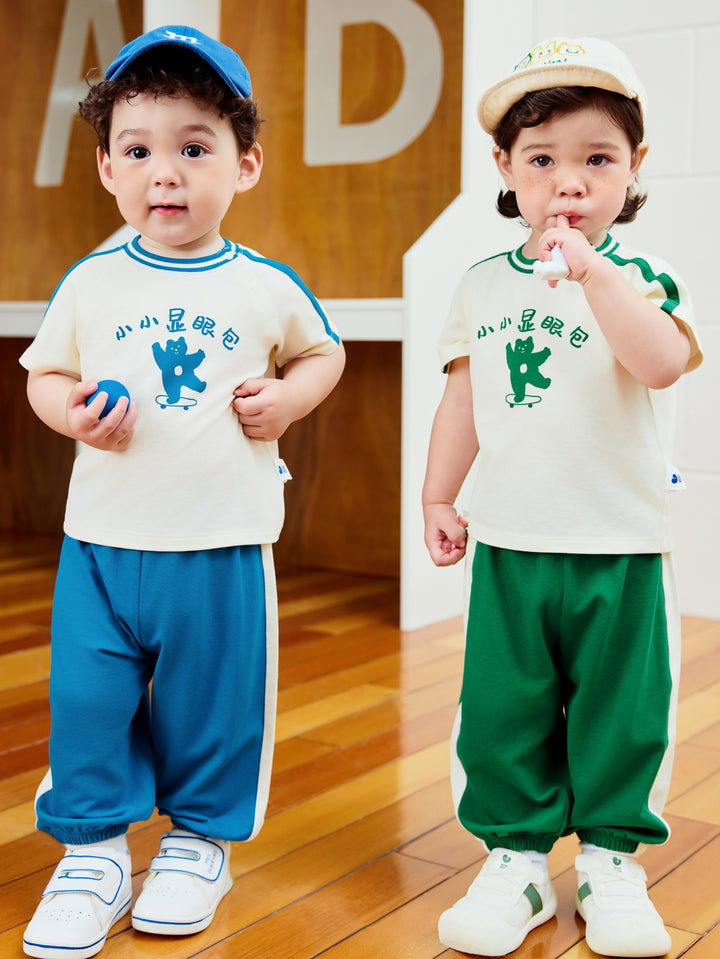 ミニバラベビーユニセックスソフトレトロカレッジスタイル2ピーススーツの夏