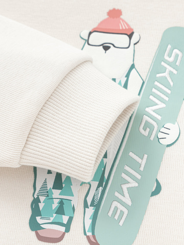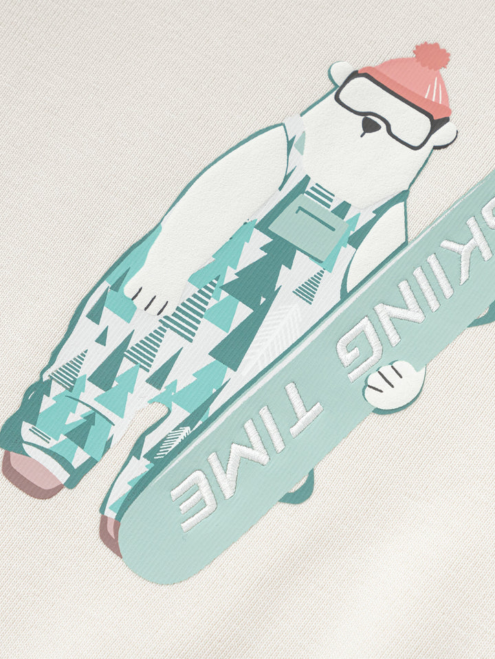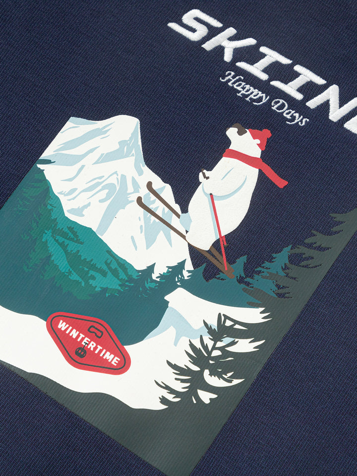 4> De voorkant op de borst is voorzien van een ski-print van een bergbeer, eenvoudig maar krachtig.
