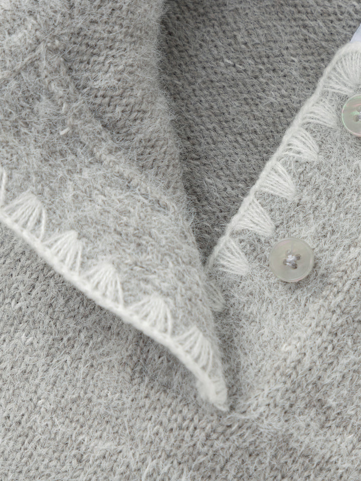 2> Kraag: Omgeslagen kraag met schelpborduurwerk bij de halslijn, iets verlaagde schouderpasvorm, combineert mode en comfort, zorgt voor vrije beweging, zeer vergevingsgezind voor lichaamsvormen.