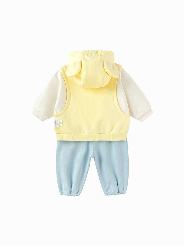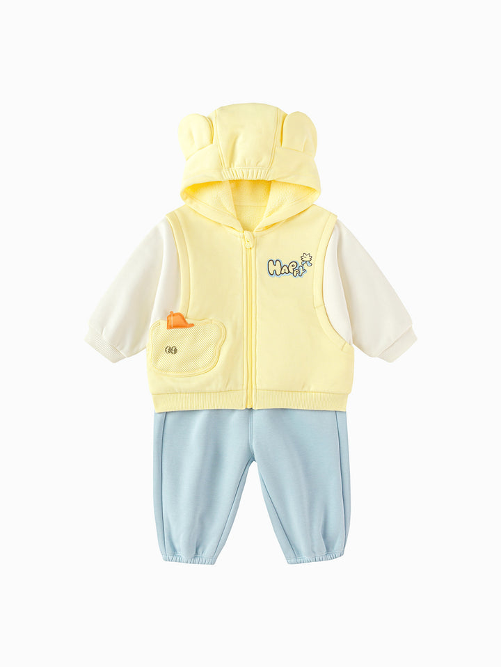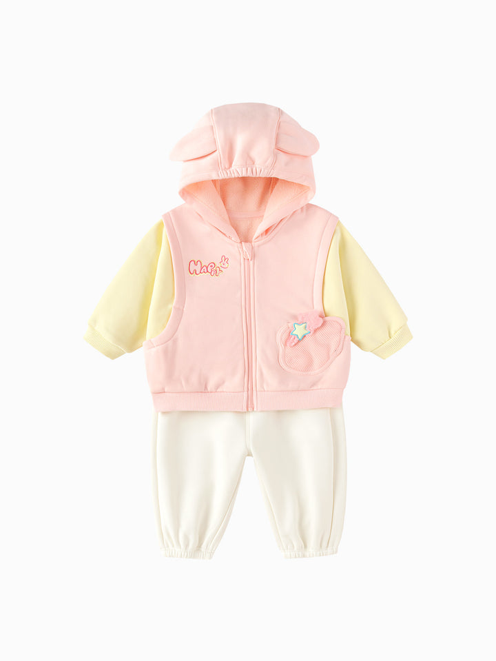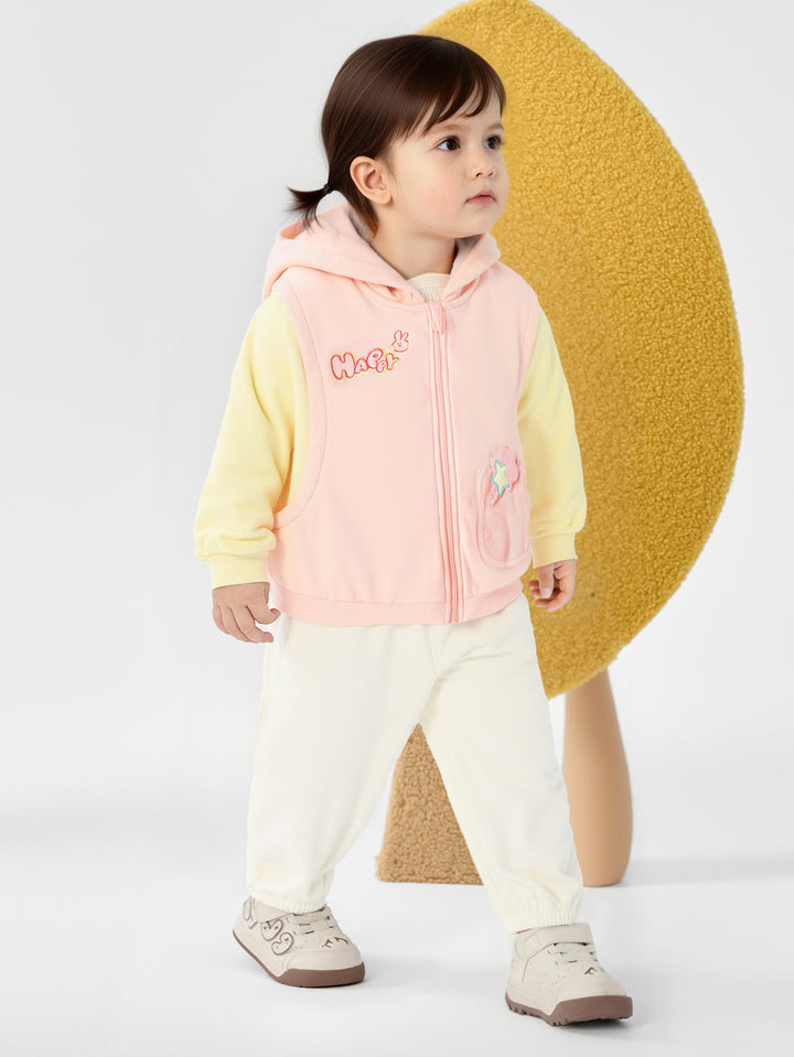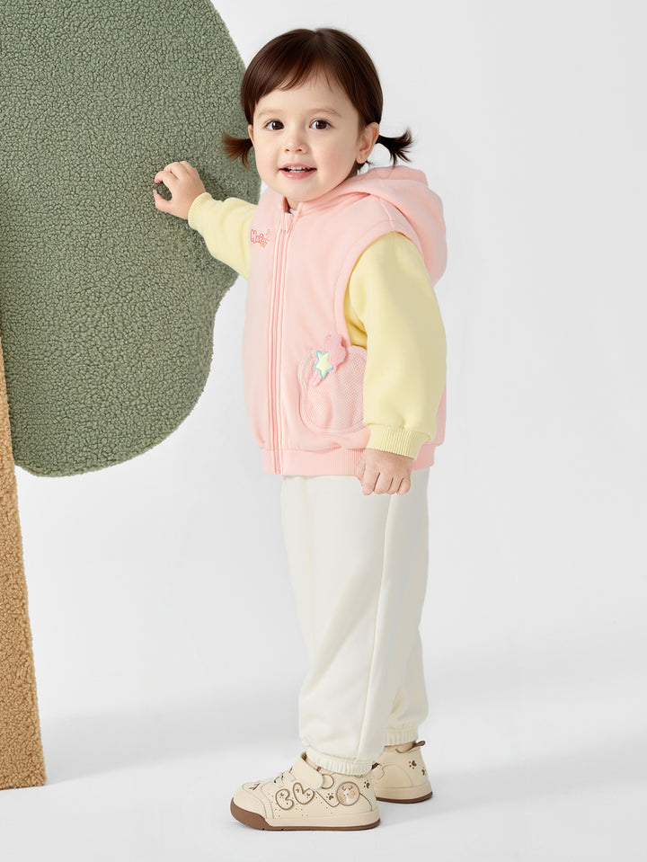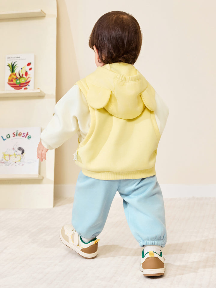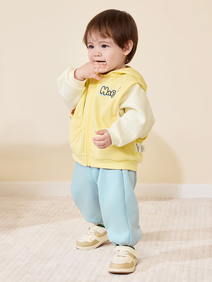 The adorable puppy and rabbit feature simple, modern silhouettes, combined with printing, padded patches, and other craftsmanship to create a stylish, versatile product that's both entertaining and educational. The fleece-lined base provides an upgraded texture and warmth. The fleece-lined fabric creates a soft, fluffy, and warm feel, and its thickness is perfect for transitional wear during early spring. This is a signature fabric Balabala has been developing year-round for its safety, comfort, and stability. Trendy faux two-pieces are a fashionable style, and the loose fit ensures comfort and freedom. This loose fit doesn't restrict your baby's movements, allowing them to move more freely. It also aligns with modern fashion trends, showcasing a casual, relaxed style.