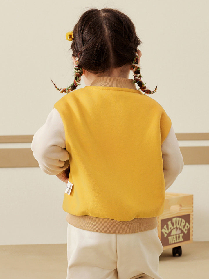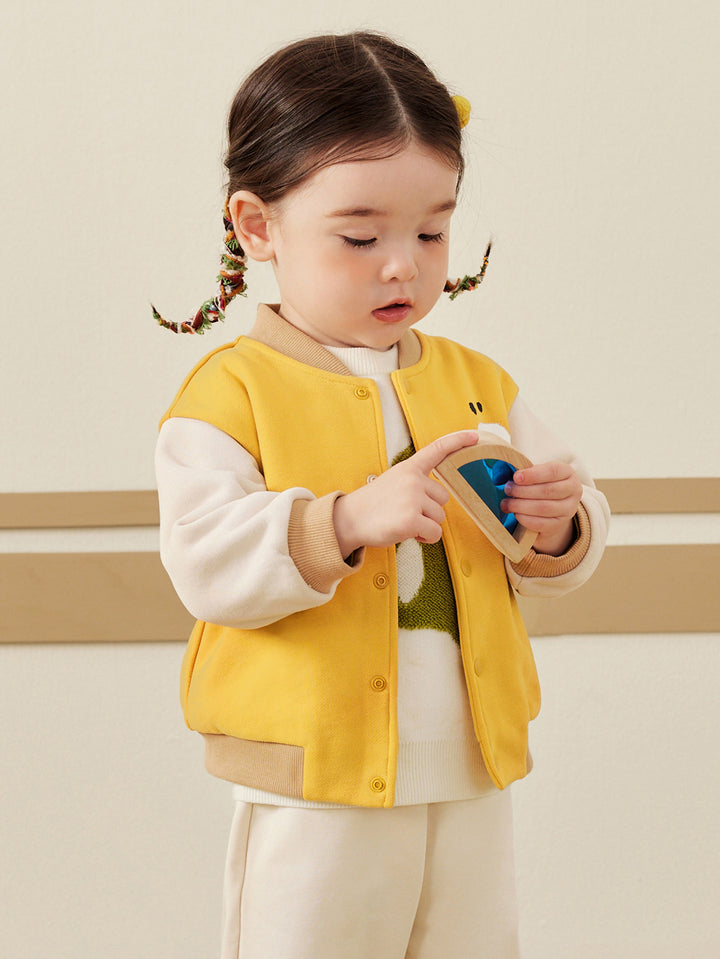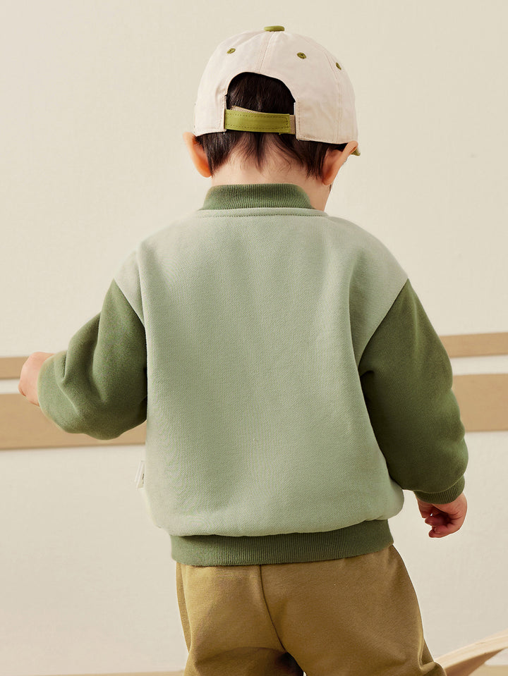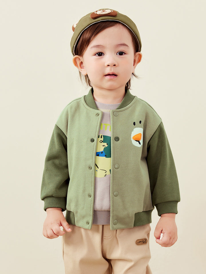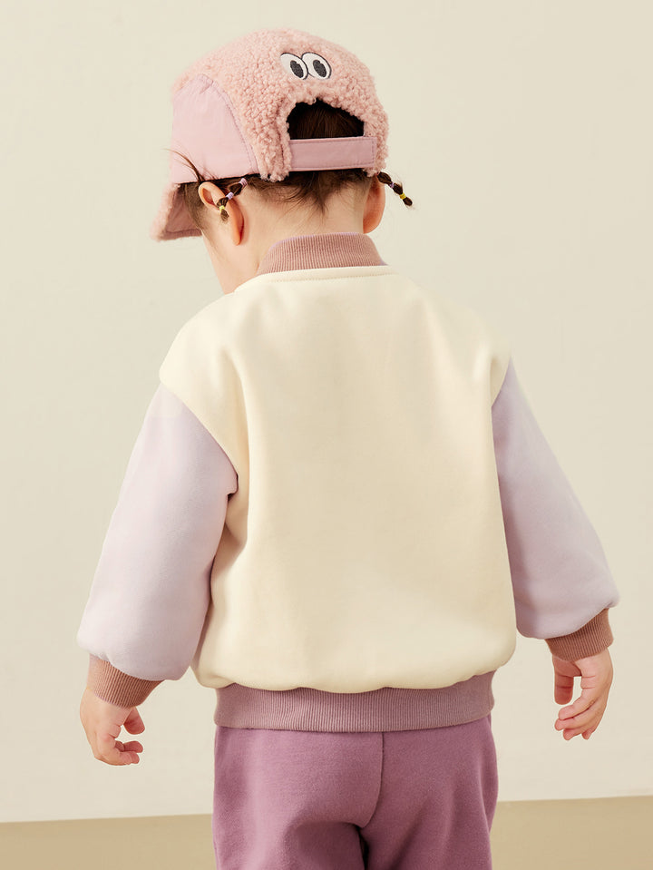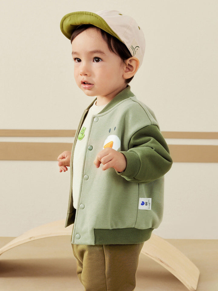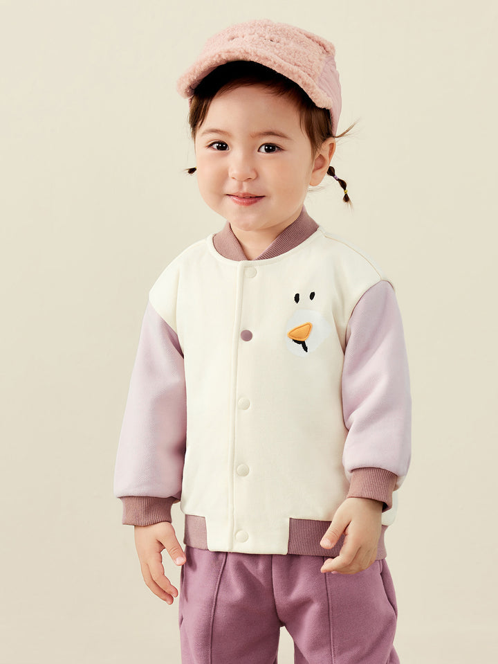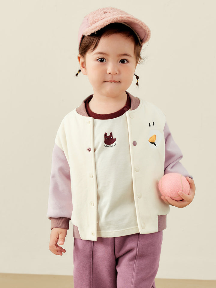 Minibala baby unisex kleurblok honkbaljas met dierenprint - 2025 herfst nieuwe aankomst, warme bovenkleding
