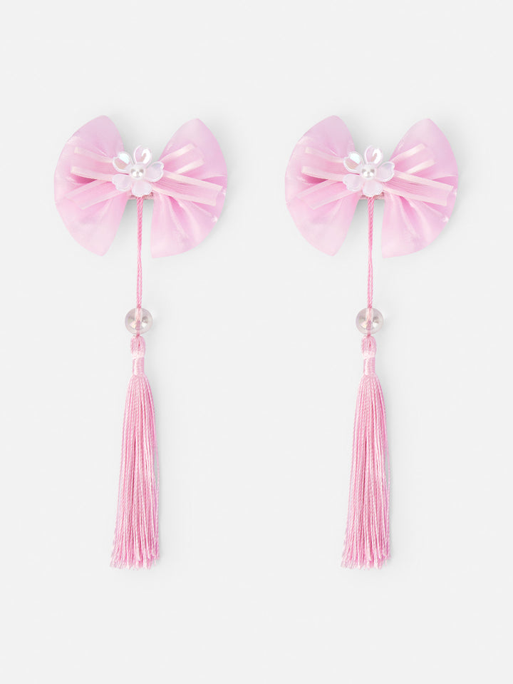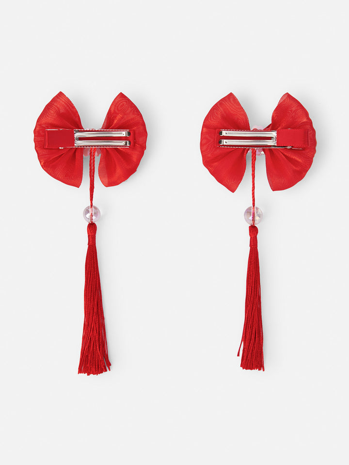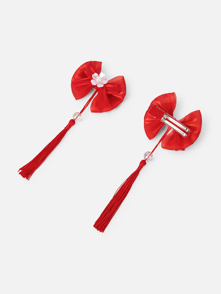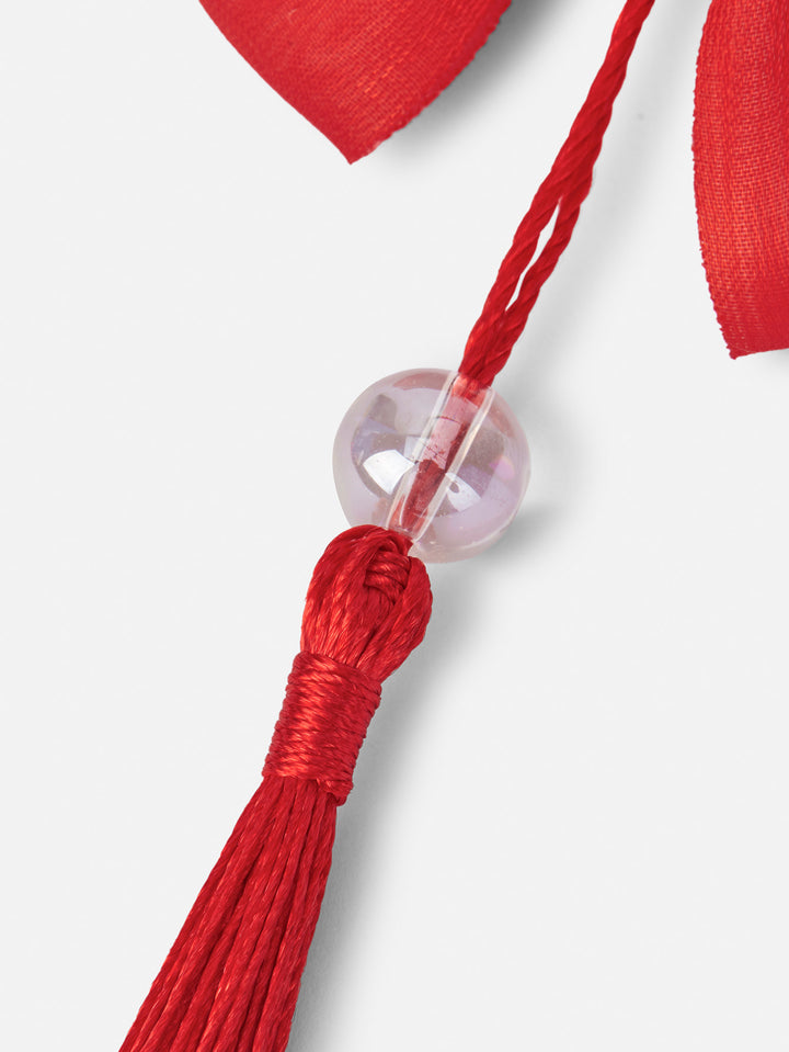 Proces materiałowy klipsa z kokardką z kwiatem wiśni: przyjazny dla środowiska klips ze stopu, kwiat wiśni syreny, przędza merceryzowana, frędzle Punkt sprzedaży produktu: nowy klips w stylu chińskim można dopasować do Hanfu, odzieży noworocznej, kokardka jest trójwymiarowa i piękna