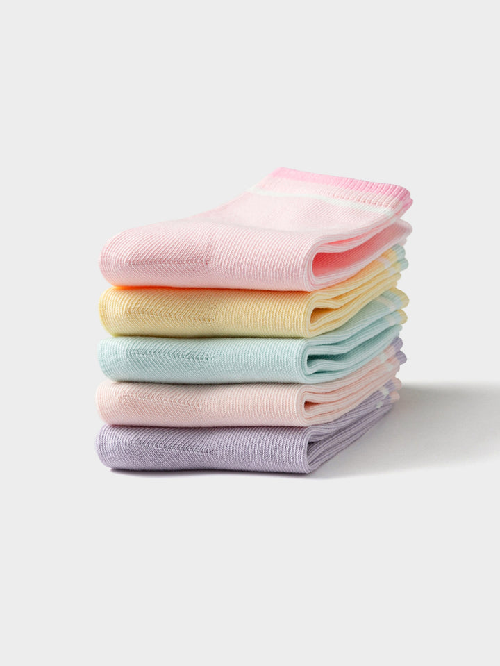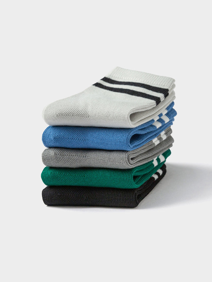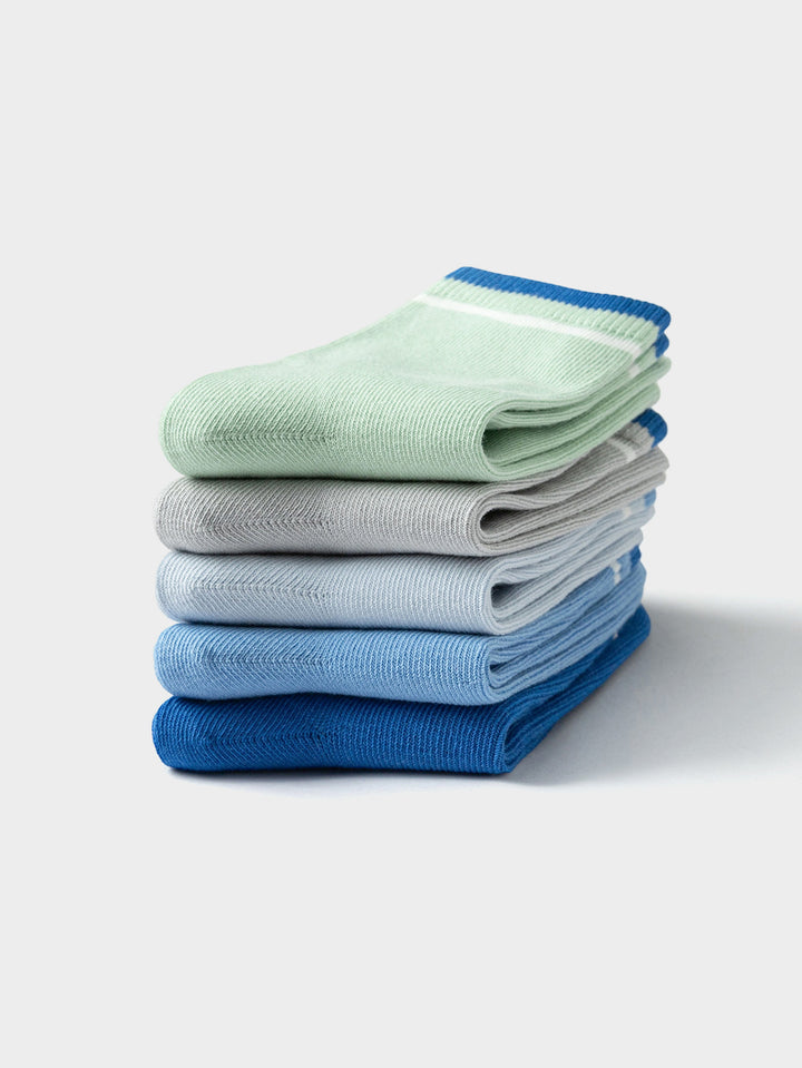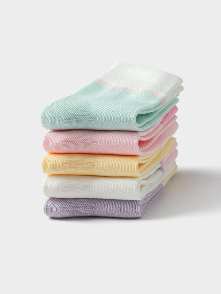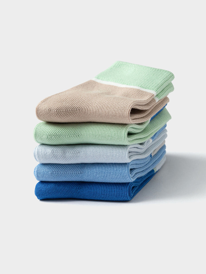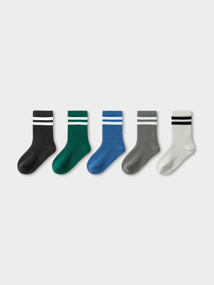 Main selling point: basic and versatile everyday socks, all-cotton double-ply everyday socks, super cost-effective five-pair combination design, basic everyday, versatile and easy to wear. Meet a variety of dressing needs. Secondary selling points: 1. Material: Selected Bala high-end combed cotton, compact siro spinning process, the sock surface is smoother and not easy to pilling; golden cotton-ammonia ratio, high elastic rubber, high rebound, not tight on the legs. Not easy to deform when worn; 2. Craftsmanship: The sock cuffs are woven with high elasticity and do not squeeze the legs; boneless hand-sewn toes, comfortable to wear without bulges, easy for children to grow and develop; 3. Version: above the ankle height, the best tube height for tying autumn trousers, not easy to catch cold 4. Design: simple basic style. The double-ply thickness is suitable for wear in all seasons. A versatile and must-have style