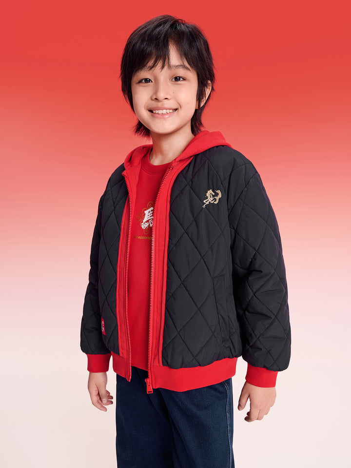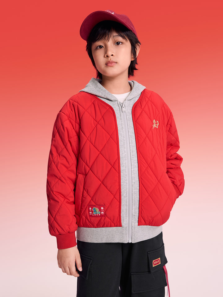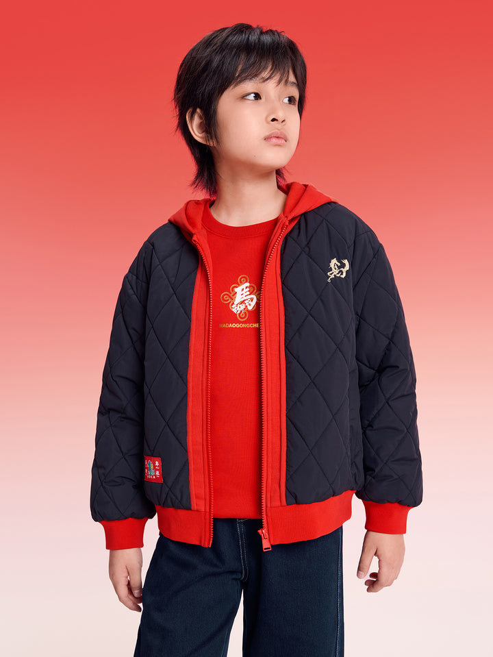 1. Tkanina: wykonana z przyjemnej dla skóry folii przędzonej, miękkiej i przyjaznej dla skóry, nadającej się do prania i odpornej na zmarszczki, łączony dwustronny dół tkaniny jest szczotkowany, miękka, luźna wersja z obniżonymi ramionami, krój z kapturem, modny fason, wygodny i stylowy w noszeniu; 3. Kolor: Jeden kolor, jeden czerwono-szary, drugi czarno-czerwony, połączenie tradycji i nowoczesności, aby zaspokoić różne preferencje i potrzeby, z silną atmosferą noworoczną; 4. Wzór: głównym elementem jest wzór galopującego konia, zmieszany z haftem ze złotej nici, modny i wykwintny; rąbek ozdobiony jest tkaną naszywką z etykietą, odznaką szczęśliwego konia Roku Konia, w połączeniu z kunsztem tkanej etykiety, wzór jest delikatny, kolory są jasne i symbolizują szczęście.