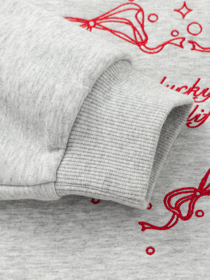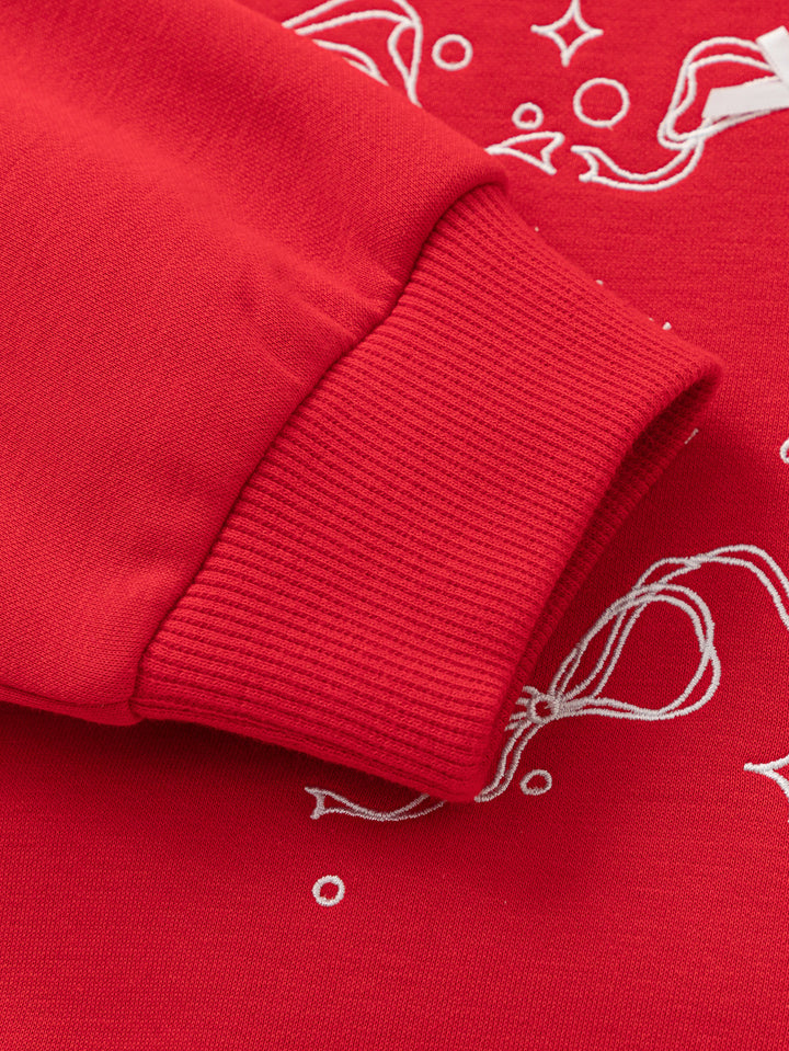 1. Bluza dostępna w kolorze klasycznej czerwieni i jasnej szarości. Czerwień symbolizuje radość i witalność Nowego Roku, tworząc świąteczną atmosferę, podczas gdy jasnoszary emanuje dyskretną elegancją, którą można łatwo połączyć z różnymi spodniami. 2. Luźna i wygodna konstrukcja pozwala dzieciom wyrazić swoją nieograniczoną energię podczas zajęć. Prążkowane mankiety i dół zapewniają ciepło, a jednocześnie zapewniają swobodę ruchów, dzięki czemu idealnie nadają się na świąteczne spotkania i codzienną zabawę. 3. Z przodu wyszyty wzór w kształcie serca z napisem „szczęście na całe życie”, ozdobiony kokardkami, wstążkami i gwiazdami, które symbolizują noworoczne błogosławieństwa i pomyślność. Projekt jest pełen dziecięcej zabawy i osobowości, dzięki czemu dzieci mogą stać się świecącymi gwiazdami w Nowym Roku. 4. Gęsta w dotyku tkanina sprawia, że jest wygodna i stylowa, ciepła i wiatroszczelna, a jej faktura jest odporna na zmarszczki i łatwa w pielęgnacji dla matek.