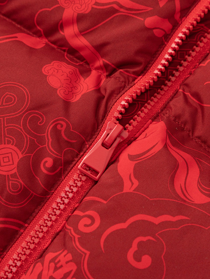 1. Tkanina: wykonana z przyjemnej dla skóry folii przędzonej, miękkiej i przyjaznej dla skóry, nadającej się do prania i odpornej na zmarszczki; 2. Styl: stójka, długość z klinem, luźna i przyjazna, ciepła i łatwa do poruszania; 3. Kolor: Przeważnie chińska czerwień, z przeszyciami spokojnej czerni, łączącymi tradycję z nowoczesnością, tworząc mocny klimat noworoczny;
