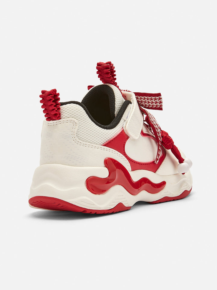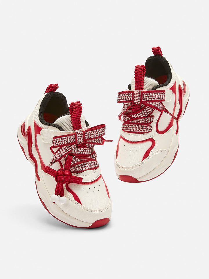 1. Noworoczny kolor czerwony łączy w sobie wykwintne, połyskujące materiały z elementami chińskich węzłów, tworząc mocny noworoczny klimat. 2. Korpus buta wykonany jest z tradycyjnej mikrofibry o chińskiej teksturze, zapewniającej komfort, oddychalność i łatwość pielęgnacji. Język wykonany jest z siateczki, która jest miękka i przyjazna dla skóry. 3. Elastyczny pasek na rzep i koronkę zapewnia łatwe zakładanie i zdejmowanie oraz bezpieczne dopasowanie. 4. Nowo ulepszona podeszwa zewnętrzna zawiera TPU po bokach podeszwy środkowej, co zapewnia dodatkową stabilność i odporność na skręcanie. Lekki, sprężysty materiał MD jest lekki i elastyczny, zapewnia doskonałą amortyzację i poprawia wyniki sportowe. Gumowa podeszwa zewnętrzna zapewnia dodatkową antypoślizgowość.