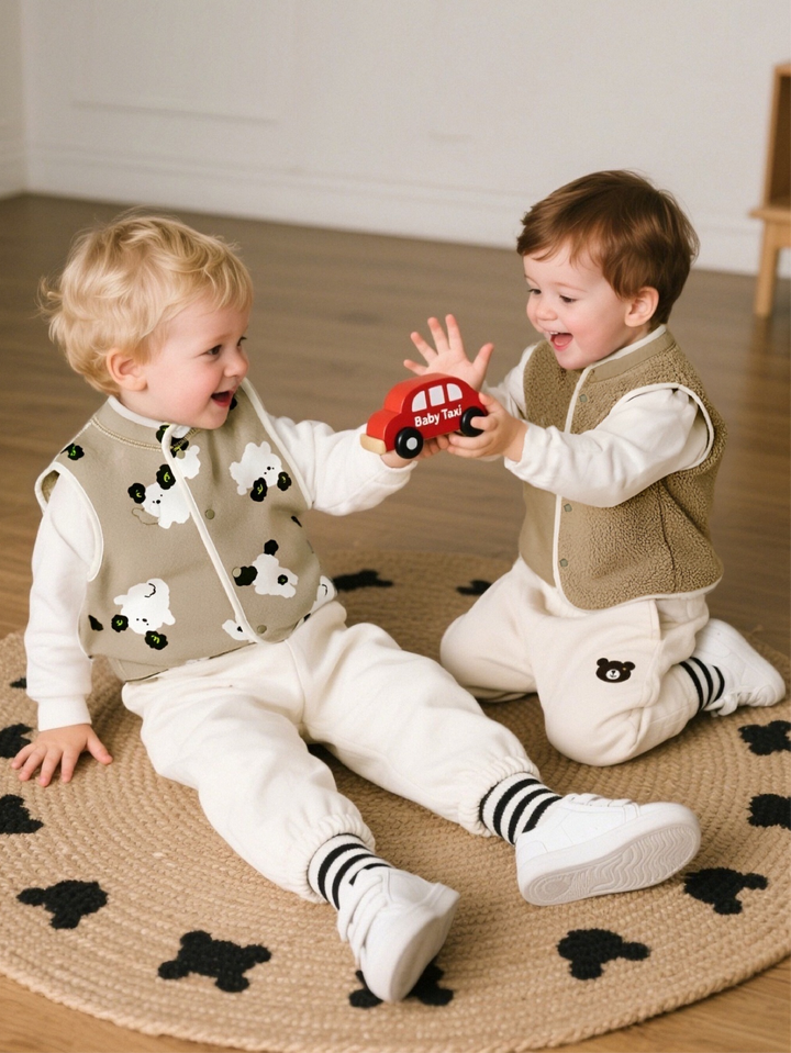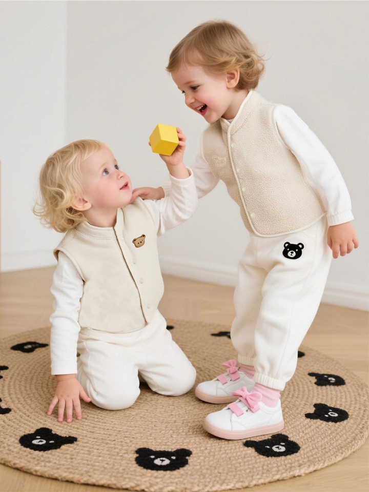 Balabala Toddler podwójna kamizelka polarowa-ciepłe 🧸, miękki i słodki nadruk (🔥🔥🔥Do 50%zniżki na dzień)