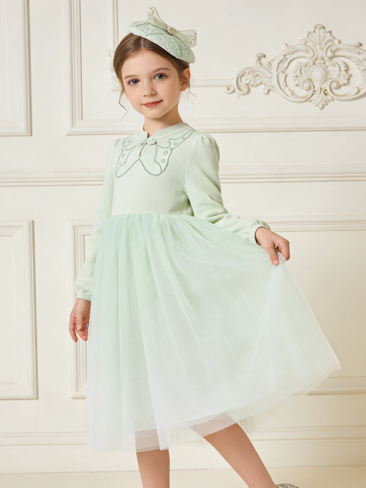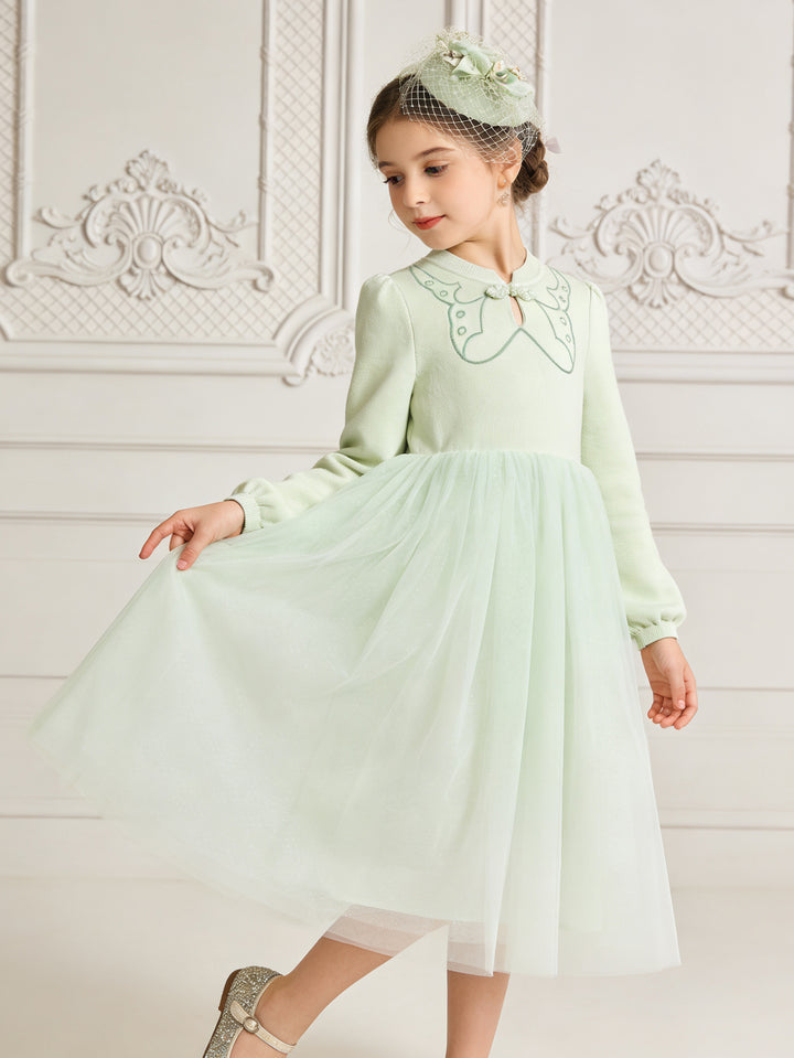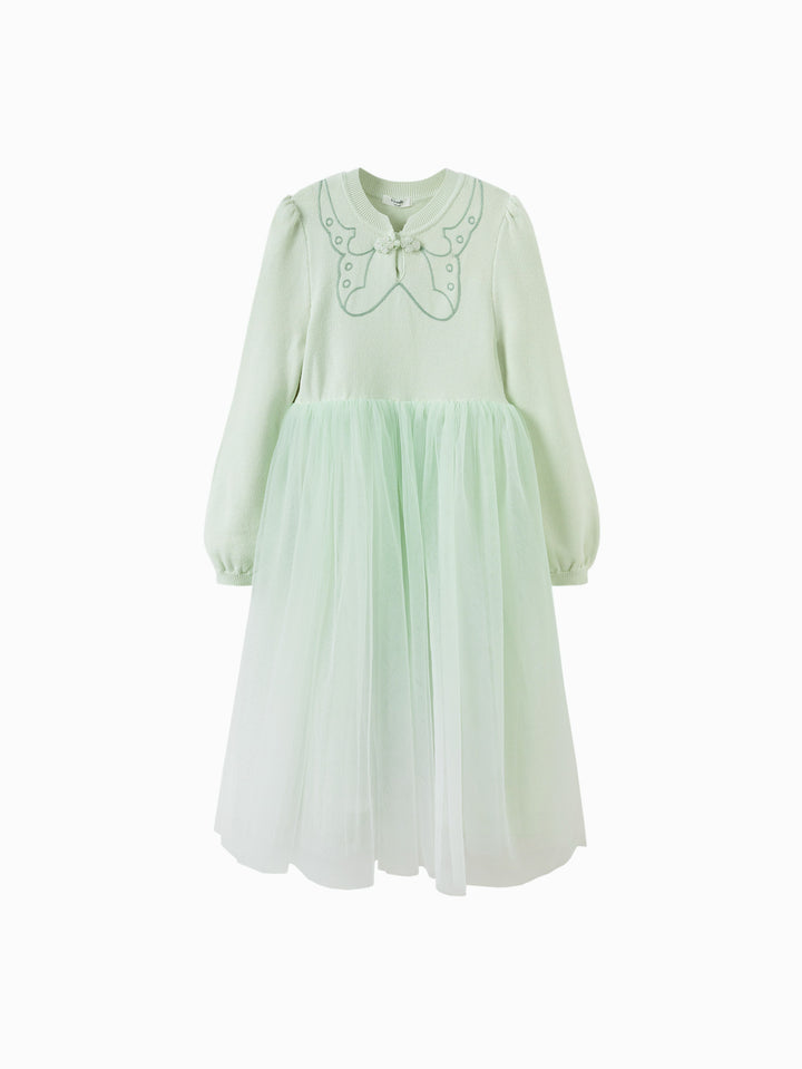 2. Motyl z przodu posiada haft łańcuszkowy 3D, wykorzystujący techniki projektowania monochromatycznego, dzięki czemu sukienka jest bardziej ekskluzywna, modna i wszechstronna