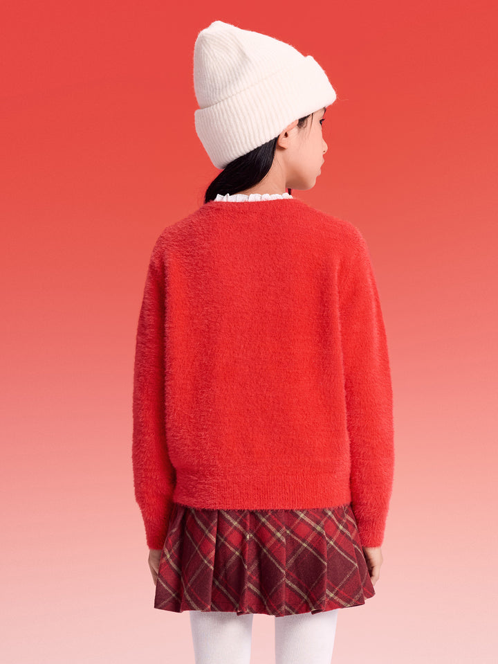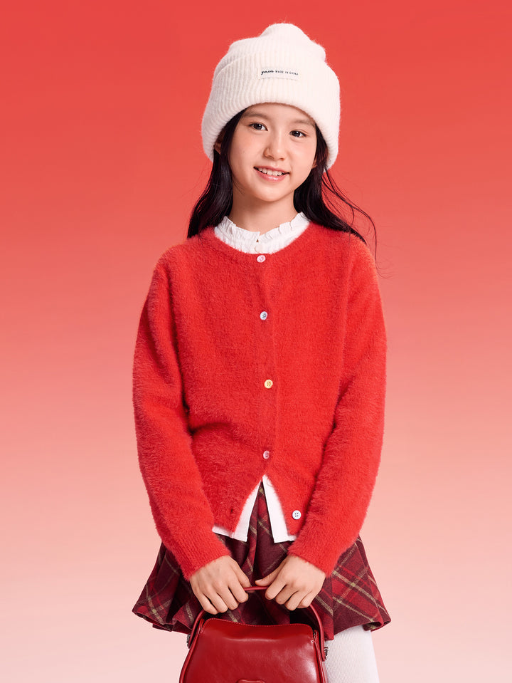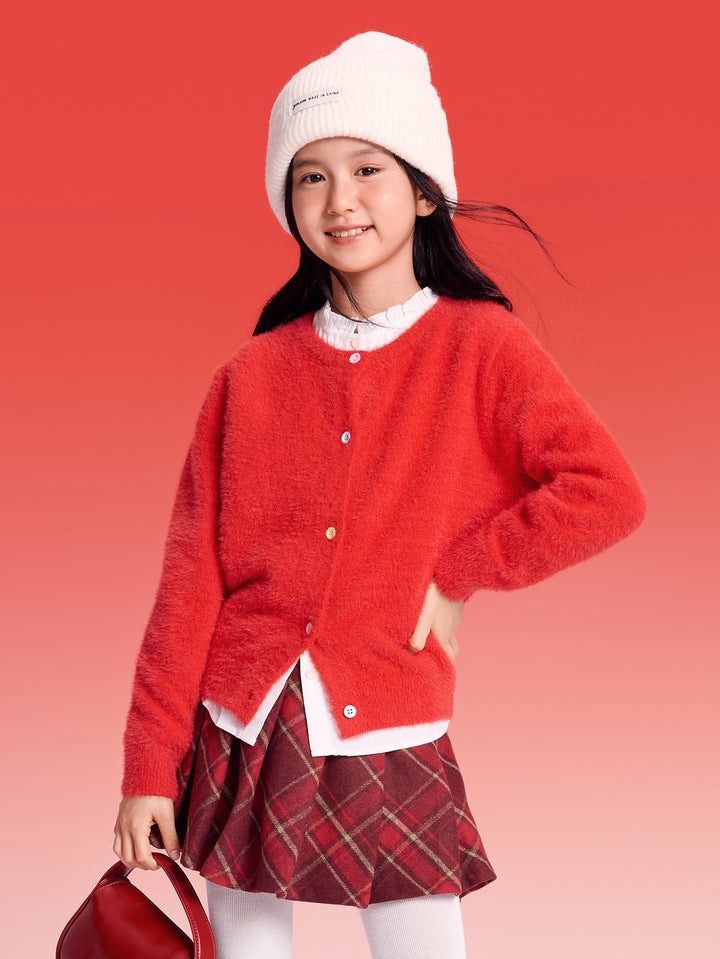 1. Charakterystyczna noworoczna paleta kolorów czerwieni i delikatnego różu oddaje świąteczną atmosferę Księżycowego Nowego Roku. Czerwień symbolizuje szczęście i szczęście, tworząc świąteczną atmosferę, a delikatny róż nadaje odrobinę delikatności i słodyczy, idealny na sylwestrowe spotkania lub spotkania z przyjaciółmi i rodziną. 2. Lekko luźna, obniżona sylwetka ramion pozwala dzieciom na swobodę ruchów, a klasyczny okrągły dekolt dodaje odrobiny uroku. Nieco krótsza długość podkreśla wyrafinowanie ubioru. 3. Projekt jest prosty, ale elegancki, a kolorowe guziki przy dekolcie i z przodu dodają zabawnego akcentu świątecznej atmosferze. Ten niezbędny styl nadaje się na każdą okazję, oferując elastyczne opcje stylizacji. 4. Tkanina wykonana jest z miękkiej i wygodnej przędzy ze sztucznej norek, która zapewnia miękkość i miękkość skórze dziecka.