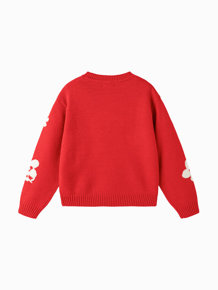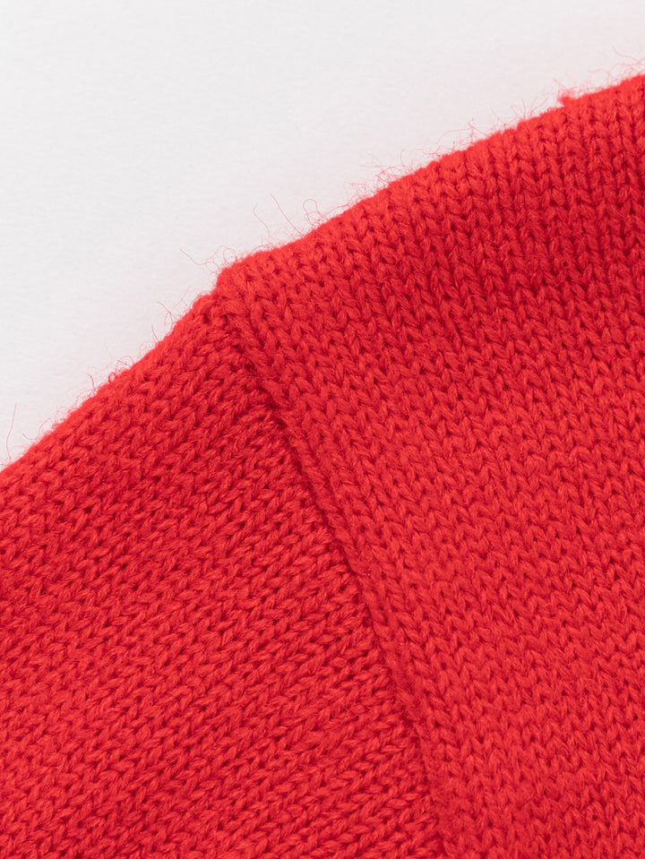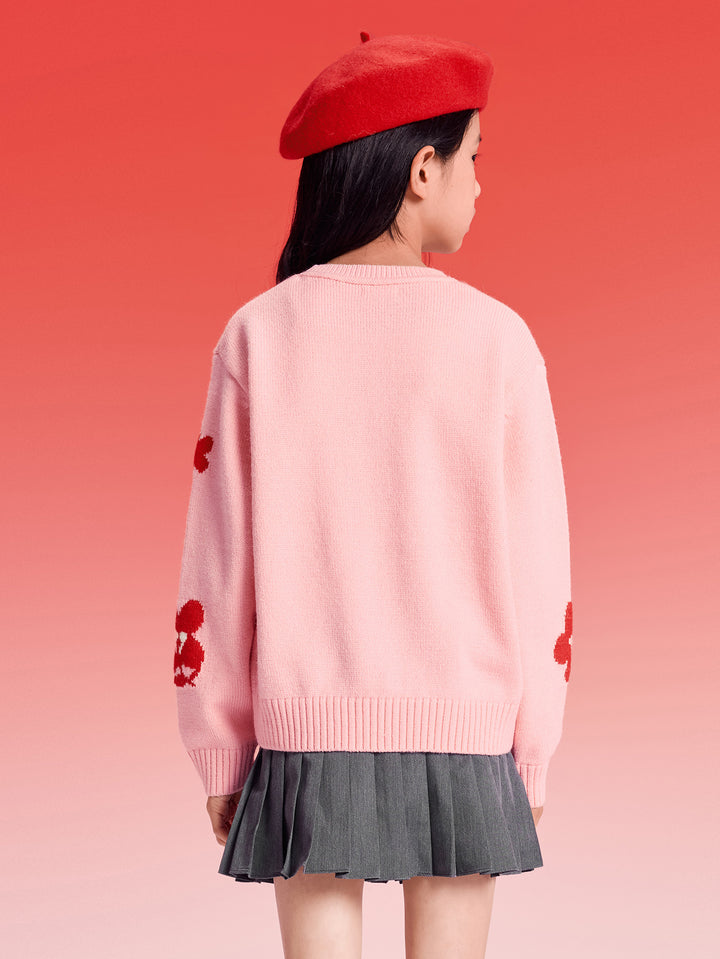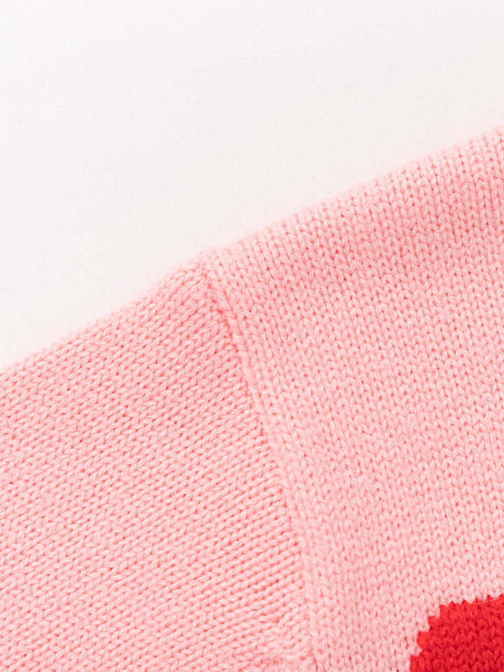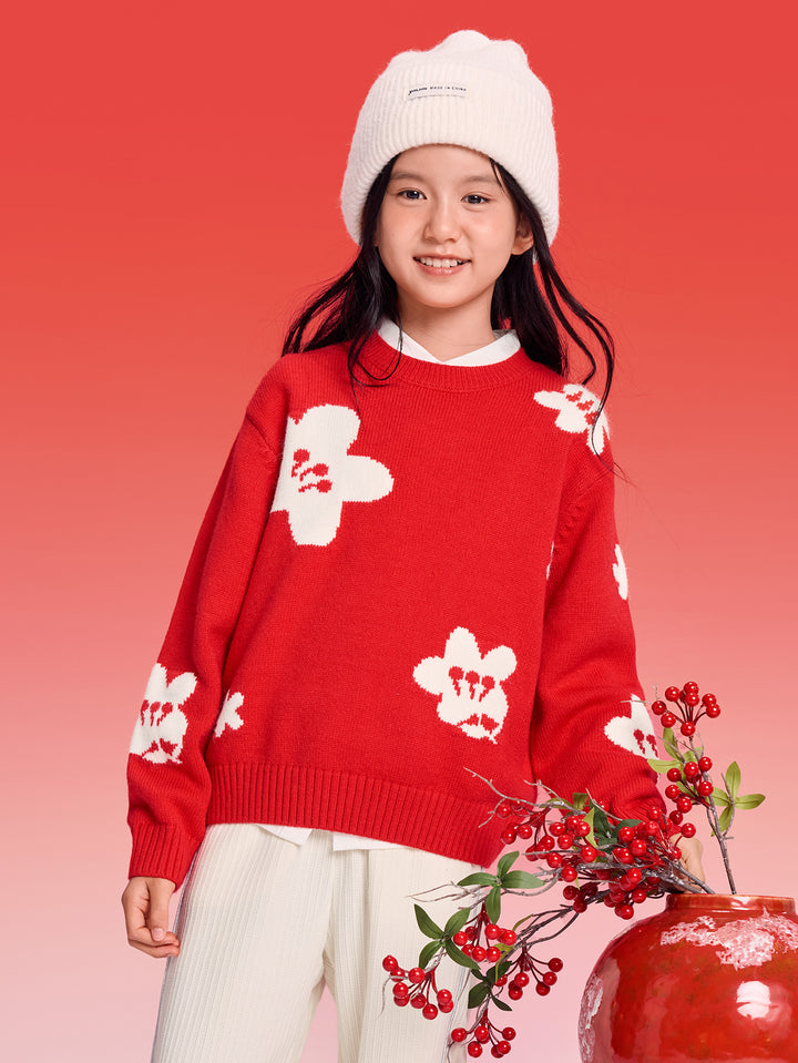1. Dostępne w trzech kolorach: kontrastujące czerwone i różowe paski tworzą świeżą i przyciągającą wzrok słodką atmosferę. Kwiatowy wzór żakardowy na całej powierzchni jest delikatny i słodki, a kontrastująca czerwień i biel są modne i uniwersalne, podkreślając świąteczną atmosferę. Czerwony, różowy i biały to klasyczne kolory, które są odpowiednie dla wszystkich typów ciała i odcieni skóry, dzięki czemu są odpowiednie dla szerokiej gamy dzieci. 2. Luźny, obniżony krój ramion zapewnia swobodne dopasowanie i wygodę, nie krępując ruchów, dostosowując się do potrzeb dzieci w każdym rozmiarze i stylu. Okrągły dekolt jest wygodny i uniwersalny, co pozwala na łatwe stylizacje z rozkloszowanymi jeansami lub plisowaną spódnicą. 3. Wyściełana naszywka 3D w kształcie serca na lewej piersi jest dziewczęca i wyhaftowana z unikalnym hasłem „Lucky for life”, dodając odrobiny elegancji. 4. Tkanina ze sztucznej wełny wykonana jest z miękkiej, kleistej przędzy, która zapewnia wygodne dopasowanie. Powierzchnia przędzy jest miękka i gładka, a puszysty puch tworzy sweter, który zachowuje miękkość i puszystość, ale nie jest papkowaty. Charakteryzuje się również sprężystością, trwałością i odpornością na odkształcenia.