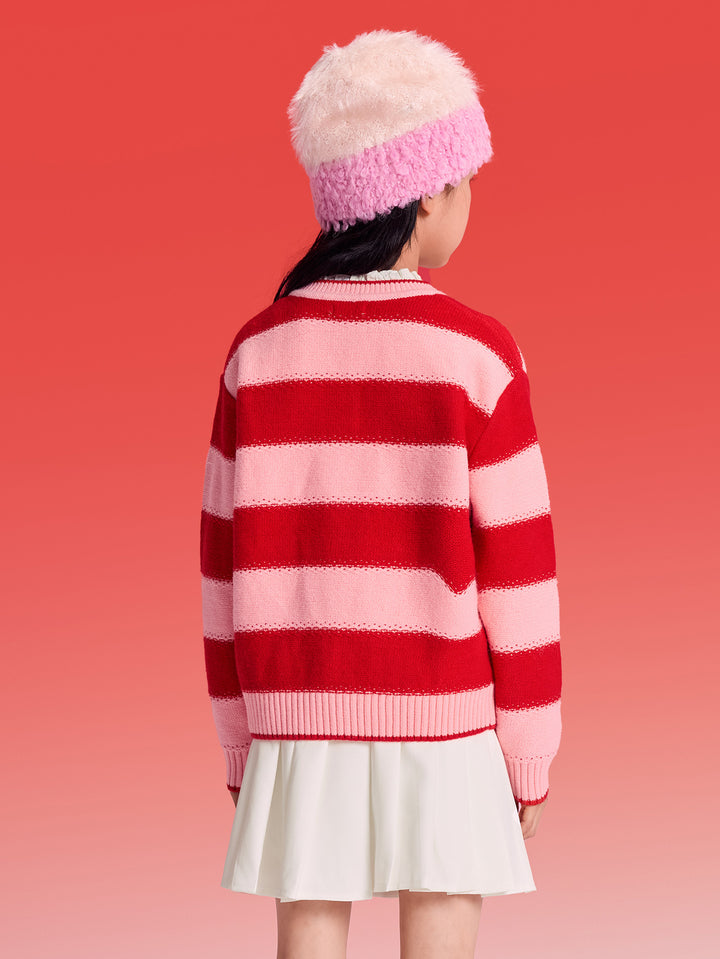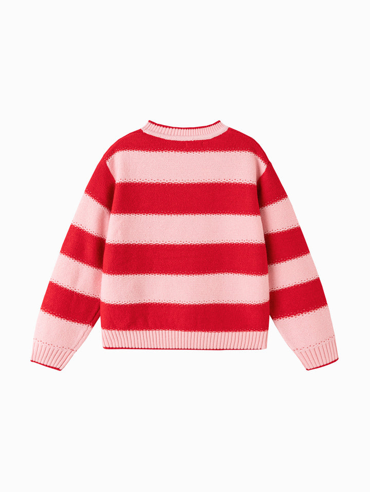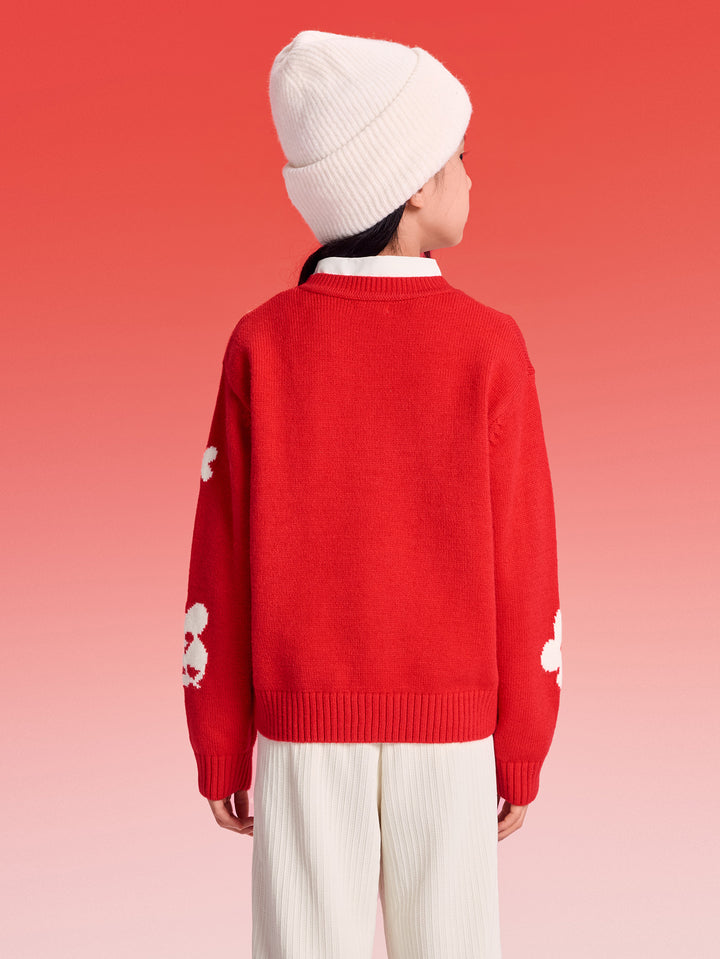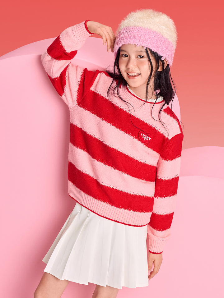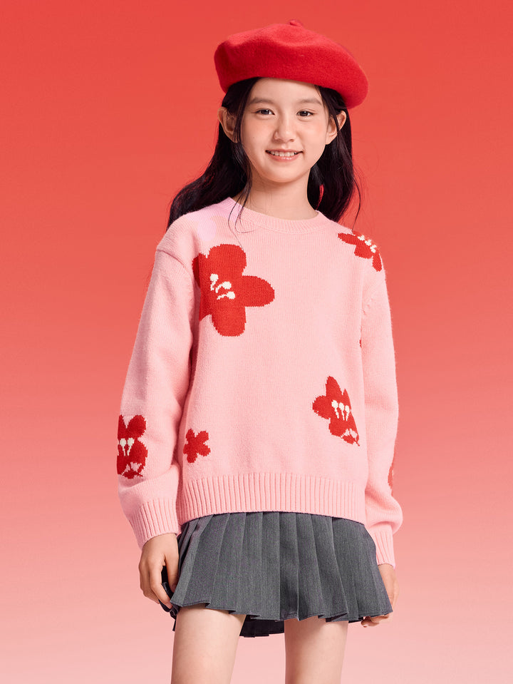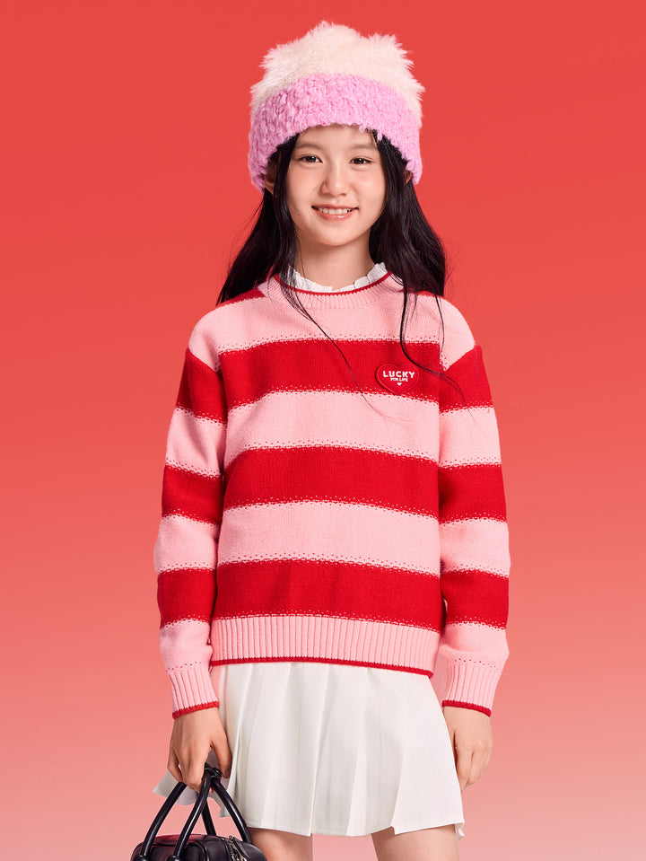 1. Dostępne w trzech kolorach: kontrastujące czerwone i różowe paski tworzą świeżą i przyciągającą wzrok słodką atmosferę. Kwiatowy wzór żakardowy na całej powierzchni jest delikatny i słodki, a kontrastująca czerwień i biel są modne i uniwersalne, podkreślając świąteczną atmosferę. Czerwony, różowy i biały to klasyczne kolory, które są odpowiednie dla wszystkich typów ciała i odcieni skóry, dzięki czemu są odpowiednie dla szerokiej gamy dzieci. 2. Luźny, obniżony krój ramion zapewnia swobodne dopasowanie i wygodę, nie krępując ruchów, dostosowując się do potrzeb dzieci w każdym rozmiarze i stylu. Okrągły dekolt jest wygodny i uniwersalny, co pozwala na łatwe stylizacje z rozkloszowanymi jeansami lub plisowaną spódnicą. 3. Wyściełana naszywka 3D w kształcie serca na lewej piersi jest dziewczęca i wyhaftowana z unikalnym hasłem „Lucky for life”, dodając odrobiny elegancji. 4. Tkanina ze sztucznej wełny wykonana jest z miękkiej, kleistej przędzy, która zapewnia wygodne dopasowanie. Powierzchnia przędzy jest miękka i gładka, a puszysty puch tworzy sweter, który zachowuje miękkość i puszystość, ale nie jest papkowaty. Charakteryzuje się również sprężystością, trwałością i odpornością na odkształcenia.