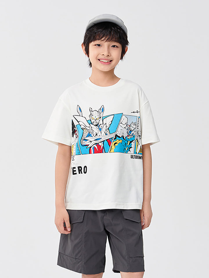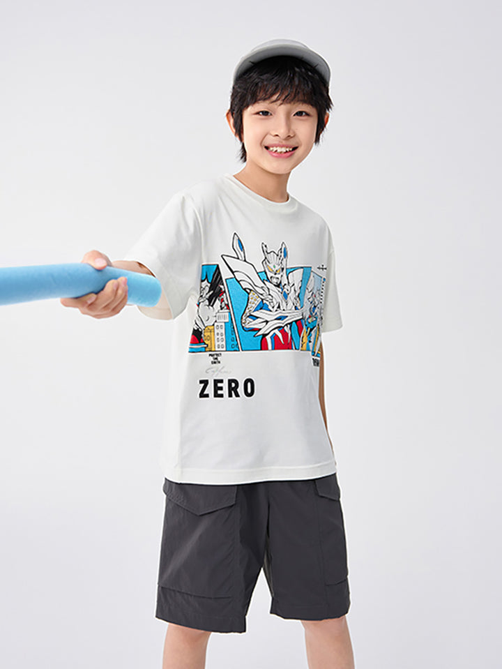 Chłopcy swobodny krótki rękaw: chłopcy umysł cero ultraman ip, fajny druk wzorów, mała chłopcy przystojna ulica; Ulepszona 180 g bawełniana magiczna przędza jednosilnikowa 2.0, jest wyposażona w zaktualizowany hangtag czarny technologii, wilgoć, szybkie suszące, chłodne poczucie antybakteryjnego (AAAAA), magiczną przędzę z elastycznością, aby nosić wygodę; Luźna wersja z krótkim rękawem, zajęcia dla dzieci są wygodniejsze; Opierając się na kolorystyce Cero-Blue-Red, biały wielki, noszący bardziej wszechstronny, Theboys Casual Good do noszenia kolorów;