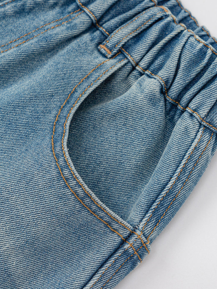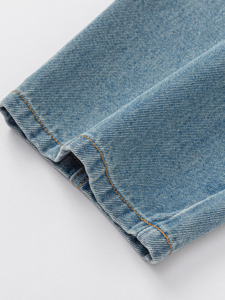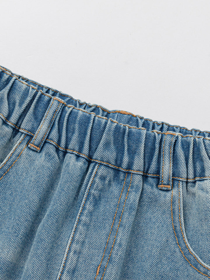1. Color: Denim color uses washing process, fermentation bleaching + fried salt + monkey, fashionable washed color 2. Style: This is a loose scimitar pants type, easy to wear and not picky about people, popular trend; Made of cotton lyocell non-stretch coarse texture denim, soft and comfortable for easy movement; The style uses structural split design to increase the three-dimensionality and fashion, and visually enrich the version 3. Matching: In spring, whether it is matched with a T-shirt, sweatshirt or school uniform, it is very fashionable and versatile, and the thickness is seasonal