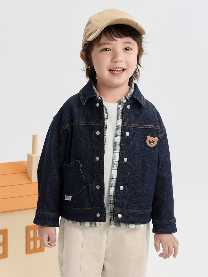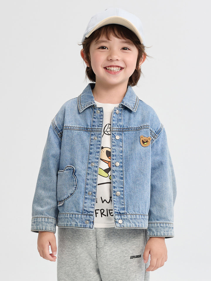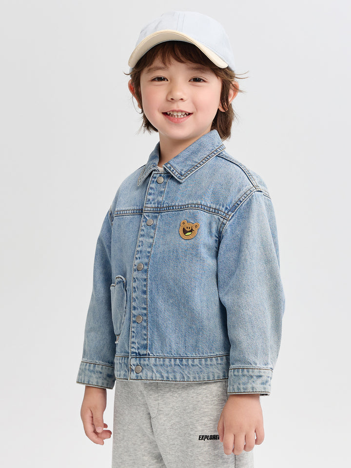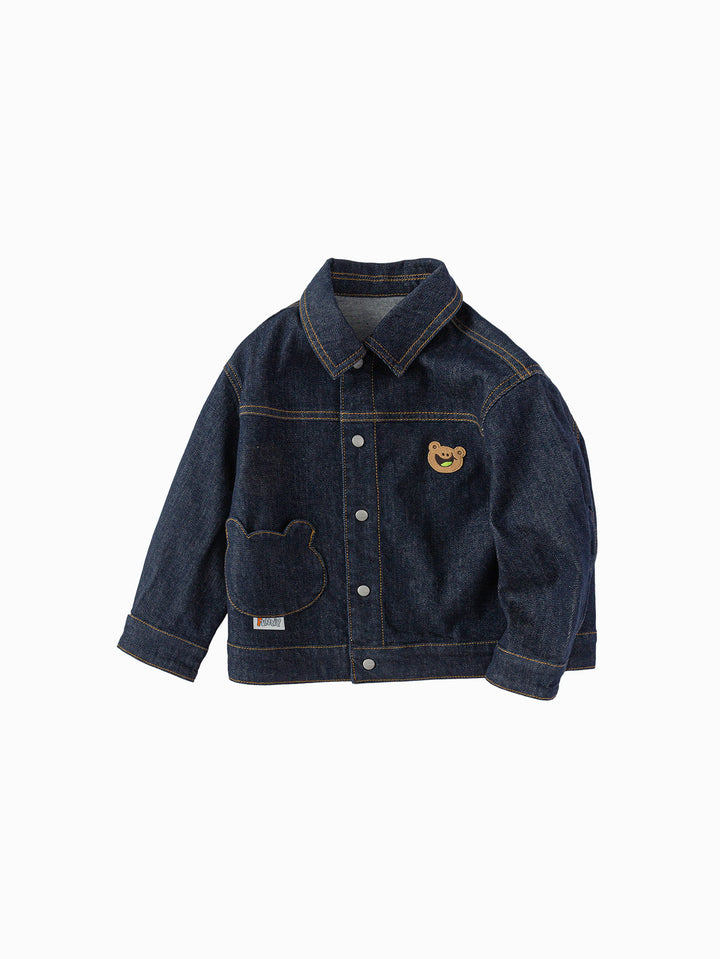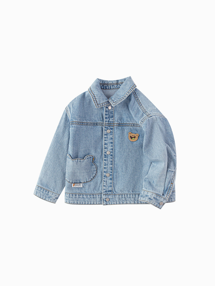 1. Style: Fashionable silhouette denim jacket, easy to wear and match 2. Pattern: Cute bear head pockets, 3. Fabric: Comfortable and soft denim fabric, suitable for babies