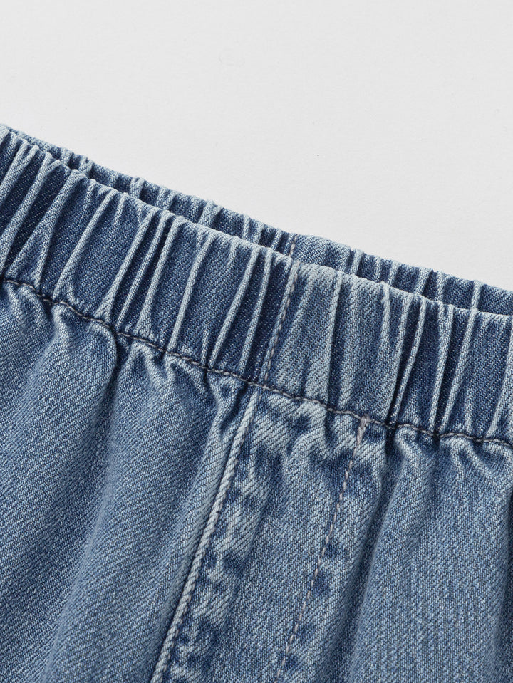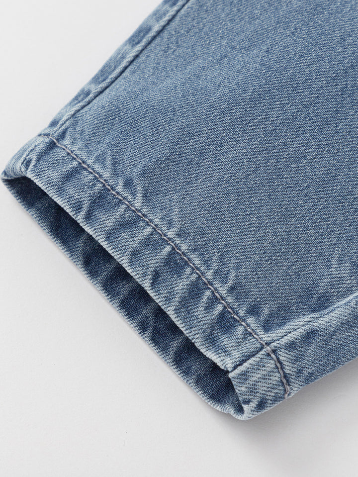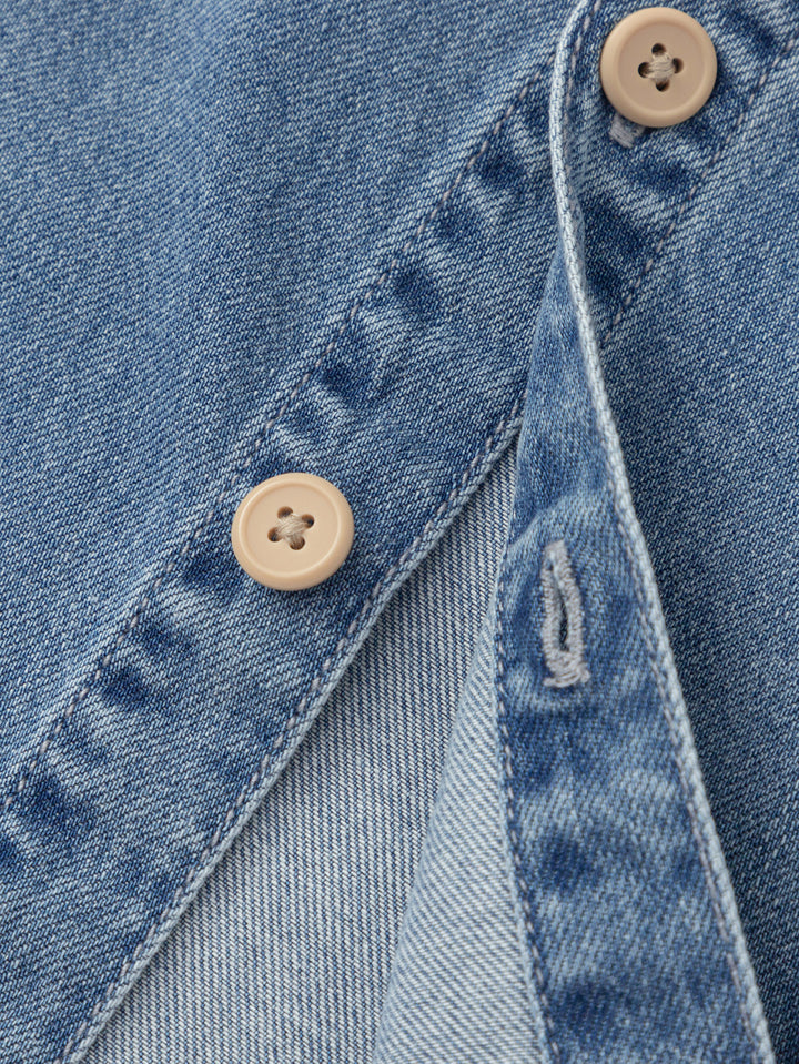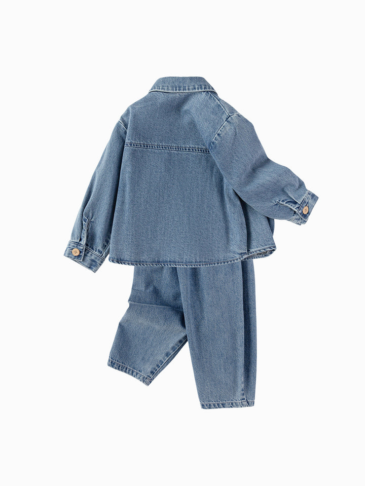1. Color: This denim suit is easy to wear with various colors. The refreshing light-colored denim sets off the baby's temperament. 2. Style: This denim suit has a fun and loose silhouette. The deconstructed design makes the baby wear it full of design sense. 3. Matching: This suit design saves parents the trouble of matching. It can be worn alone or with other clothes. It is particularly suitable for daily wear. 4. Season: This thickness is suitable for wearing in autumn.