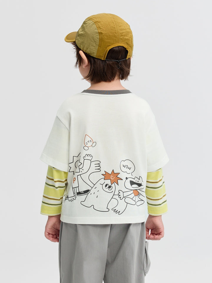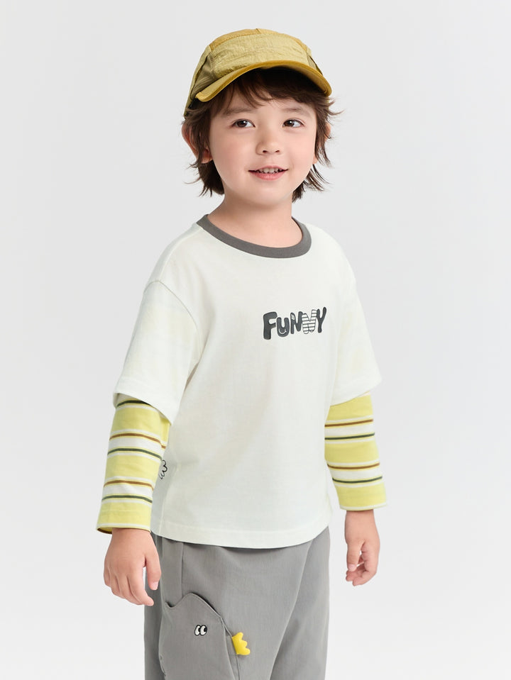 Style & Material: Faux two-layer T-shirt for boys, high-density 100% cotton fibers. Soft, breathable, suitable for sensitive skin. Maintains shape and absorbs sweat.