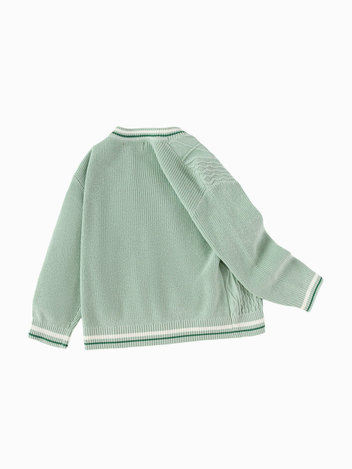 1. This style is made of 32S/2 50% cotton 30% Eucosil 20% Lyocell, which feels comfortable. 2. The front piece is innovatively spliced with different cable textures, which is elegant and fashionable. The small octopus pattern adopts jacquard texture. The contrasting color riband design is the finishing touch. 3. Matching: This style is suitable for children to match with T-shirts and pants. It is especially suitable for daily wear and exquisite street wear. 4. Season: This thickness is suitable for autumn and spring.