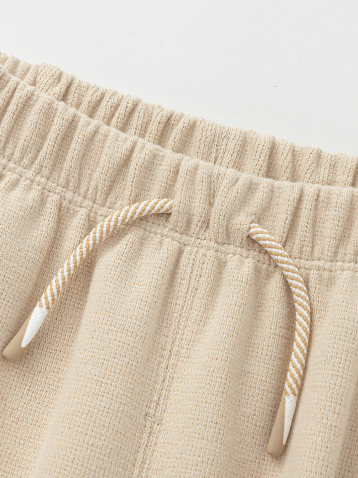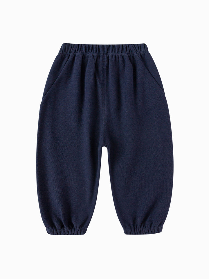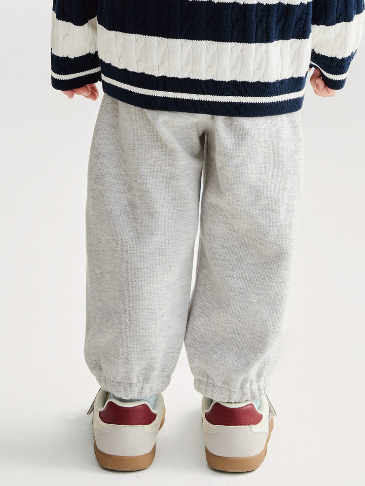 Fit: Loose jogging silhouette for easy movement without drag. Fabric: Cotton-polyester blend: Combining the softness and breathability of cotton with the durability and hardwearing of polyester, this fabric ensures both comfort and easy care. Lightly brushed finish: Through meticulous polishing, each pair of pants has a delicate, smooth feel, reminiscent of a mother's gentle touch. Even in the coldest months, they offer the most intimate warmth and protection. Design: Floral gray is understated yet stylish; khaki is natural and vibrant; and dark blue is calm and elegant, making them a must-have in every little boy's wardrobe.