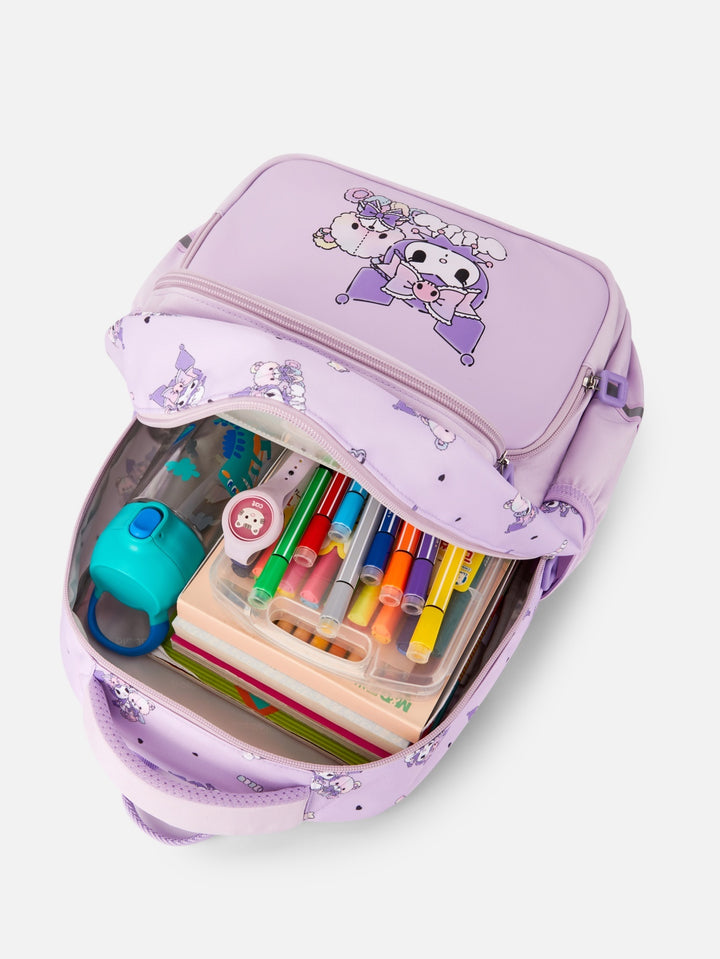 Pattern: Full-print Kuromi IP design with detailed heat transfer on front pocket, elegant and cute.