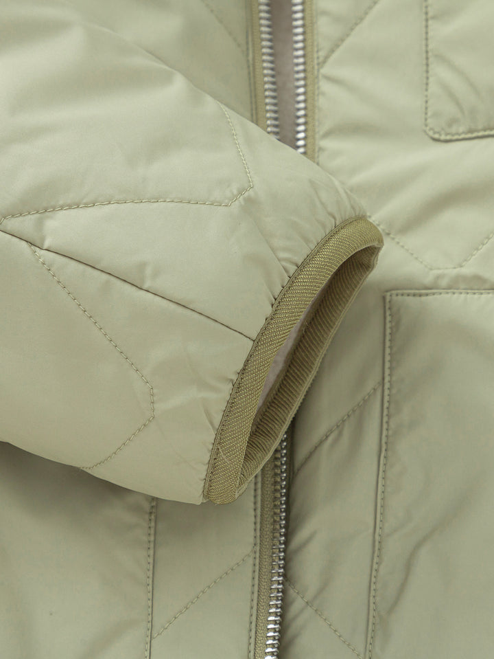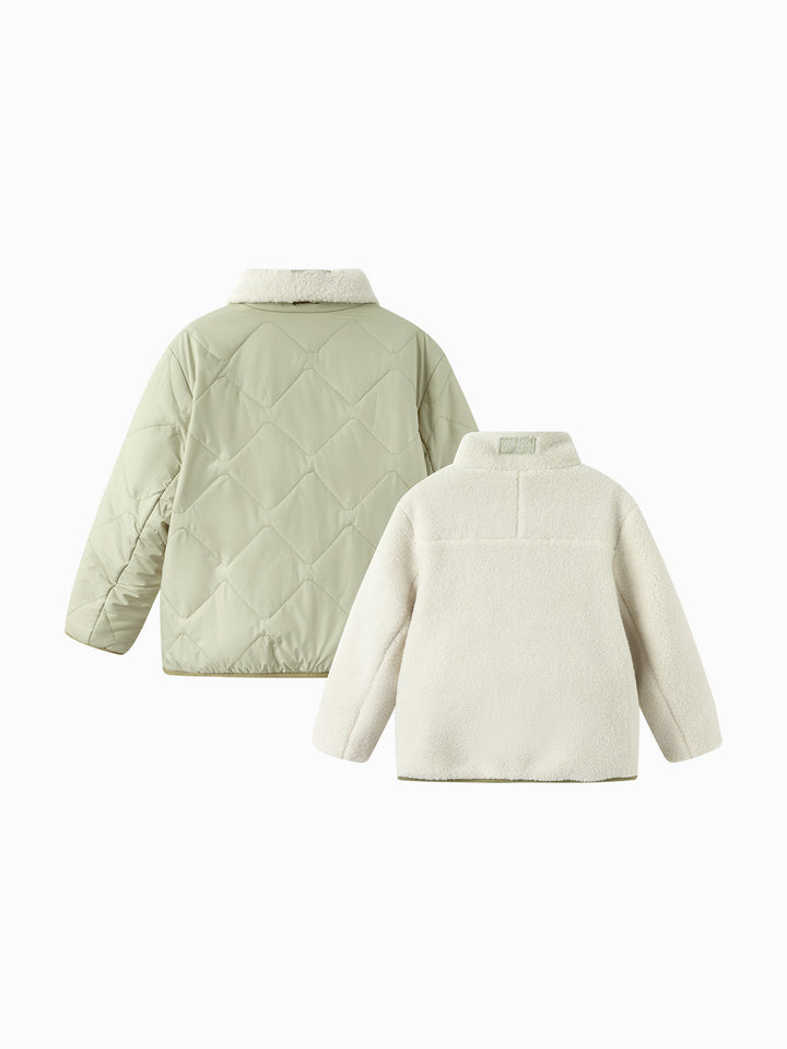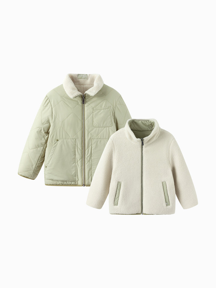 4、Pieces can be worn separately or layered; inner sweater with double zipper, outer down with decorative quilting