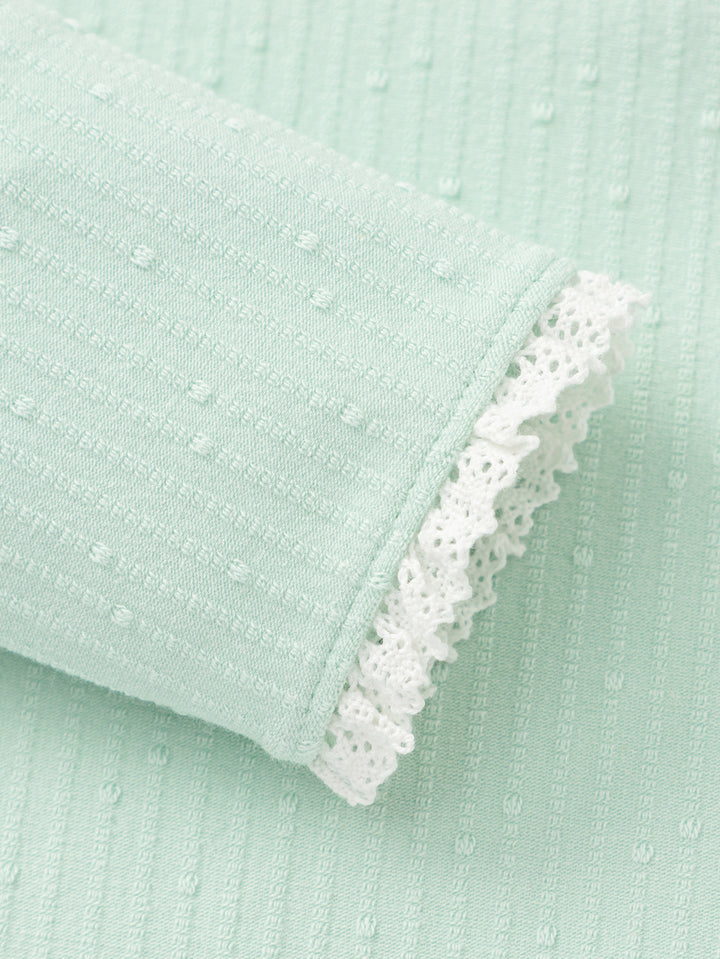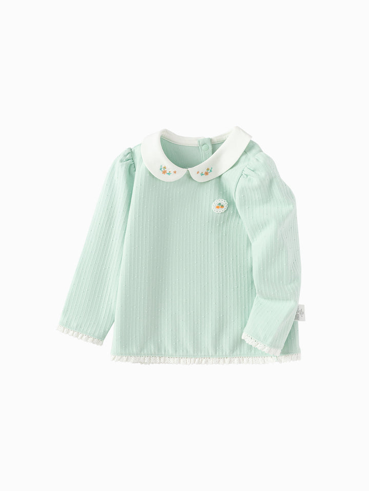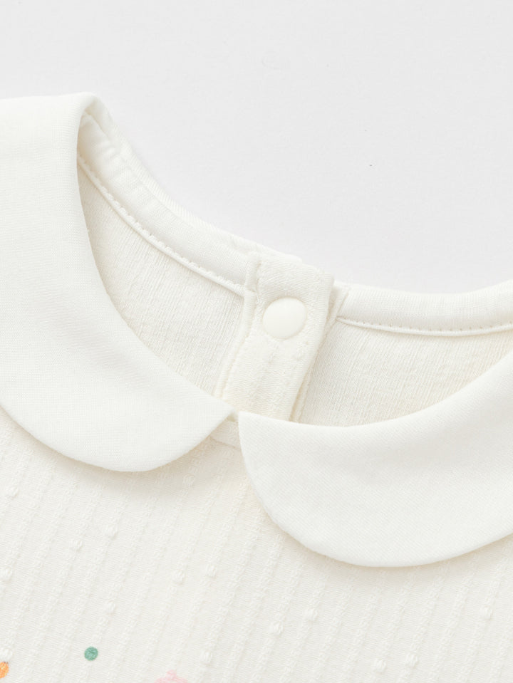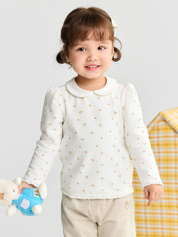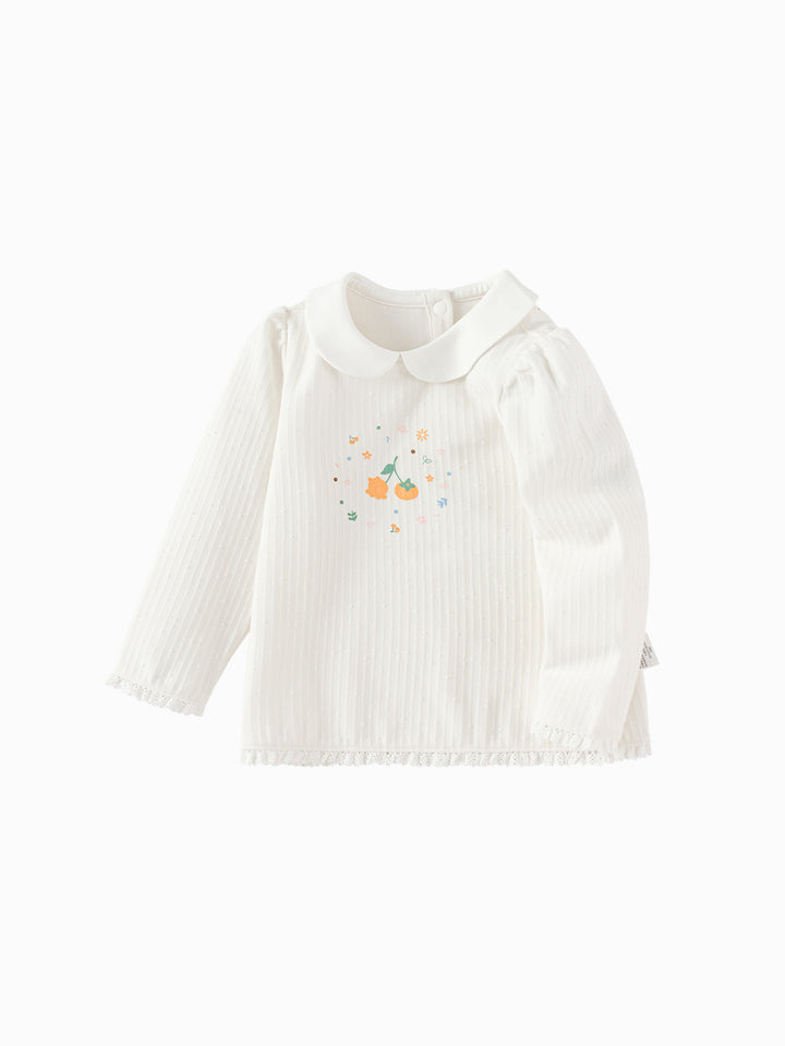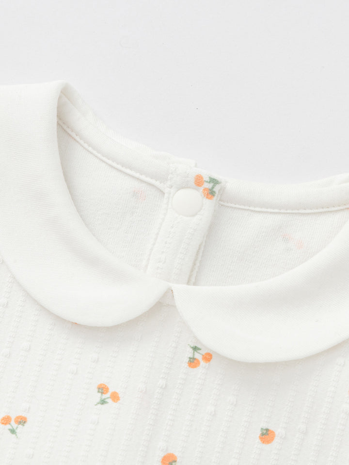 1. Crafted from 220g transfer jacquard pattern, the fabric is stylish and soft to the touch. 2. The small lapel and lantern sleeves, along with the embroidered patch on the chest and lace trim at the hem, create a sweet and adorable look. The all-over persimmon pattern adds a touch of flair.
