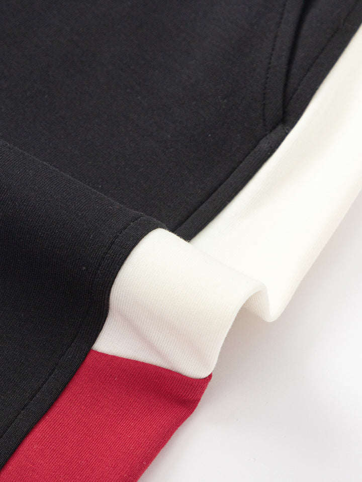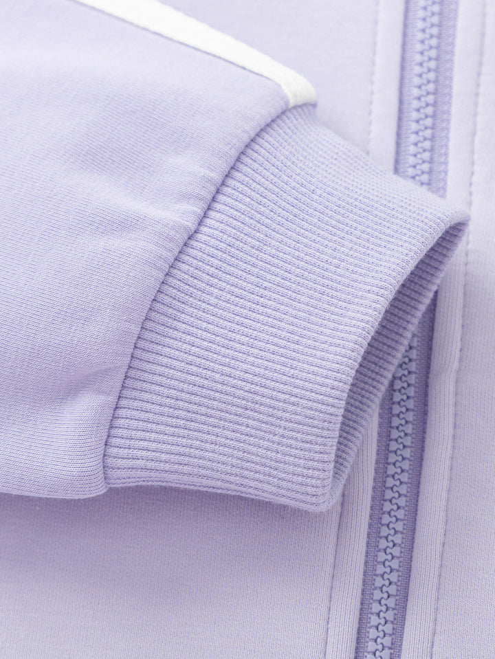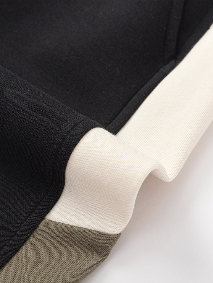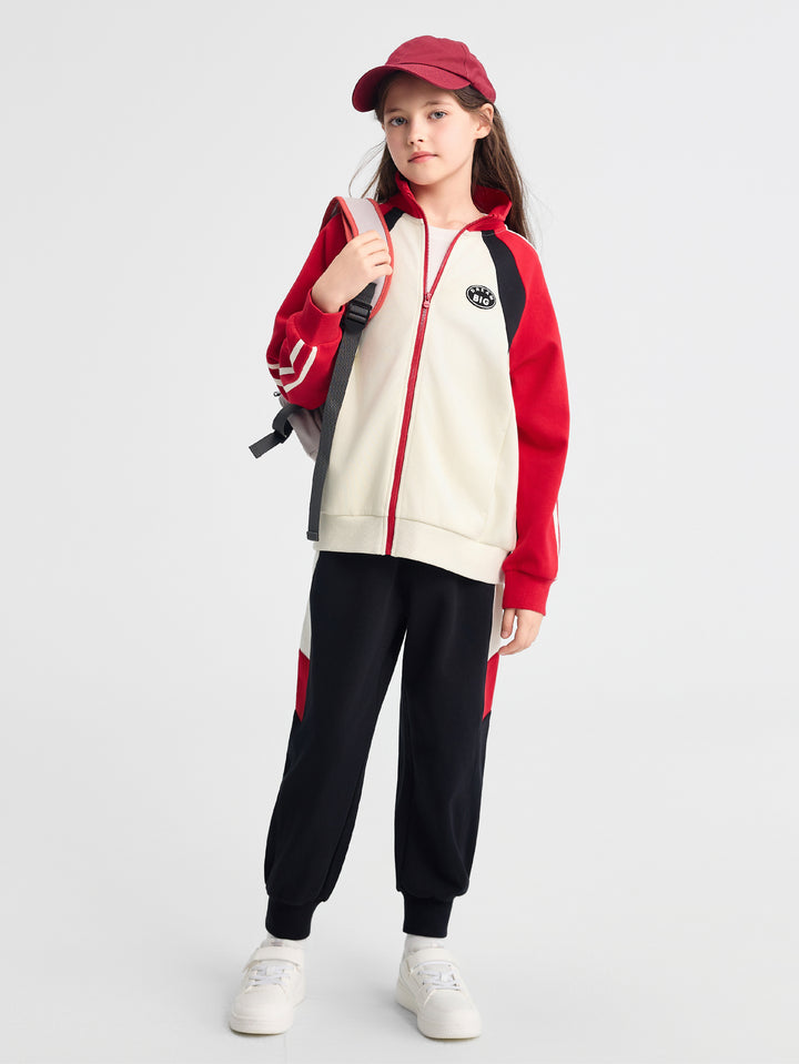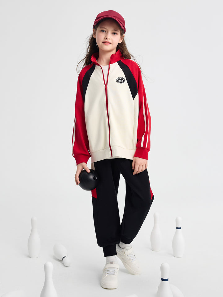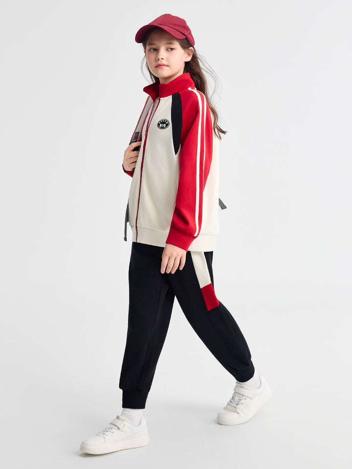1. Fabric: 280G four-side elastic air layer fabric, soft to the touch, Q-bouncy and stylish. 2. Split color: the front piece of the top is designed to split the front piece, and the color is designed to hit the color, which makes the upper body spirit handsome. 3. Accessories: left front chest faux suede rubber stamp, simple letter design, very versatile. 4. Version: stand-up collar placket into the garden suit, choose a loose and stylish version, pants loose drop crotch O-type, fashionable degree UP.