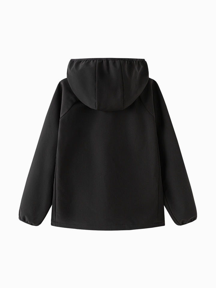1. Functional fabric: Soft shell fabric, compounded with polar fleece, upgraded thickness to adapt to autumn and winter, the fleece lining is more skin-friendly and warm; the outer fabric is windproof, water-repellent and breathable; it is tight, smooth and wear-resistant, while also taking into account the need for shape retention; 100D hollow spandex yarn technology is used to give the fabric a certain degree of elasticity; 2. Simple and versatile style, suitable for wearing in various scenes; 3. Colorful outdoor colors are available for boys, girls, adults and children; 4. Fitted raglan version, with a short front and long back hem, it looks more energetic and fits the body better; 5. Reflective prints provide safety protection; 6. Elastic edging on the hood and cuffs prevents wind from intruding; 7. The triangular protective pull on the placket does not pinch the skin or the neck, and provides careful protection. 8. Practical zippered pockets make it more convenient to store children's items;