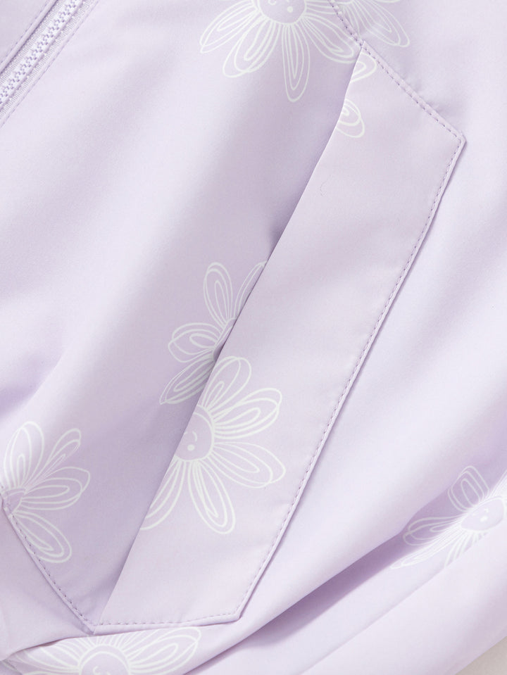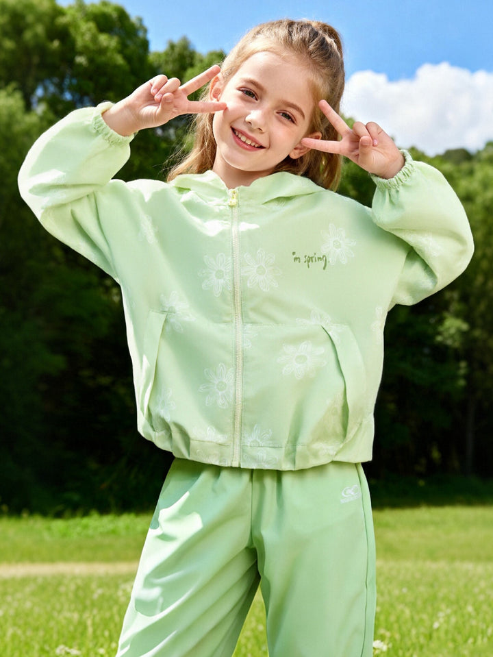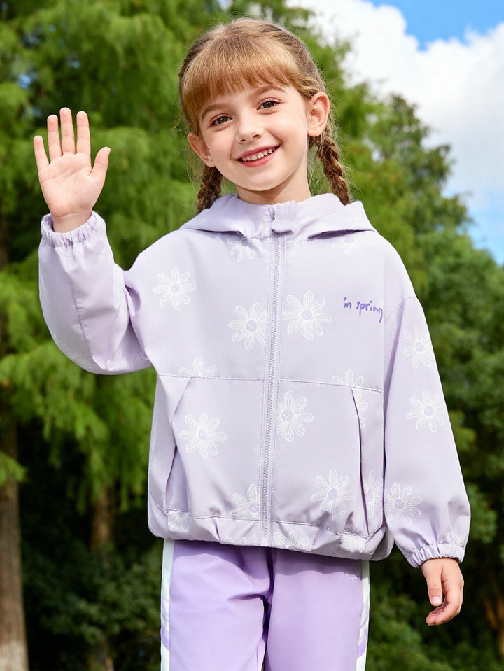 1. Color: purple is sweet, green is fresh and artistic. 2. Style: waterproof and breathable fabric, warm and windproof, full-page small flower pattern, childish and cute. 3. Matching: this top can be matched with a T-shirt from the same series for children, and knitted overalls for the bottom. 4. Season: this top is moderately thick and suitable for spring wear.