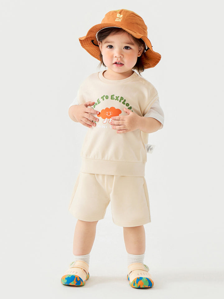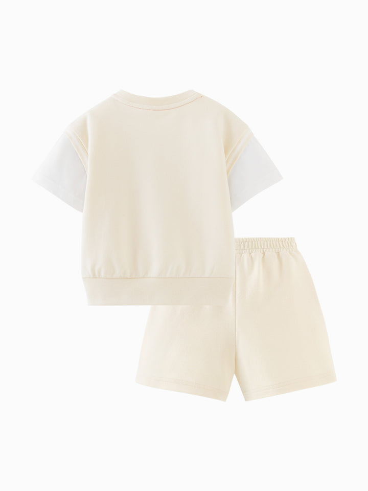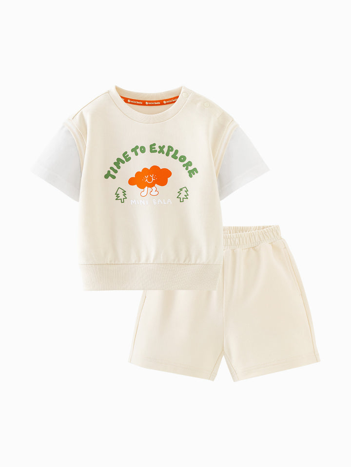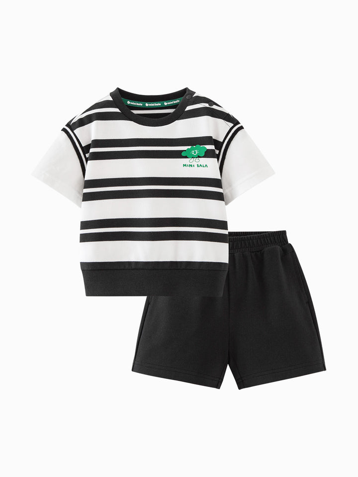Top: Main fabric: 46.1% polyester 39.1% cotton 7.8% viscose 7.0% spandex Sleeve fabric: 100% cotton (excluding trimmings) Pants: Fabric: 46.1% polyester 39.1% cotton 7.8% viscose 7.0% spandex (excluding trimmings)
