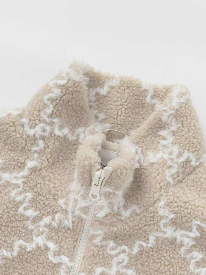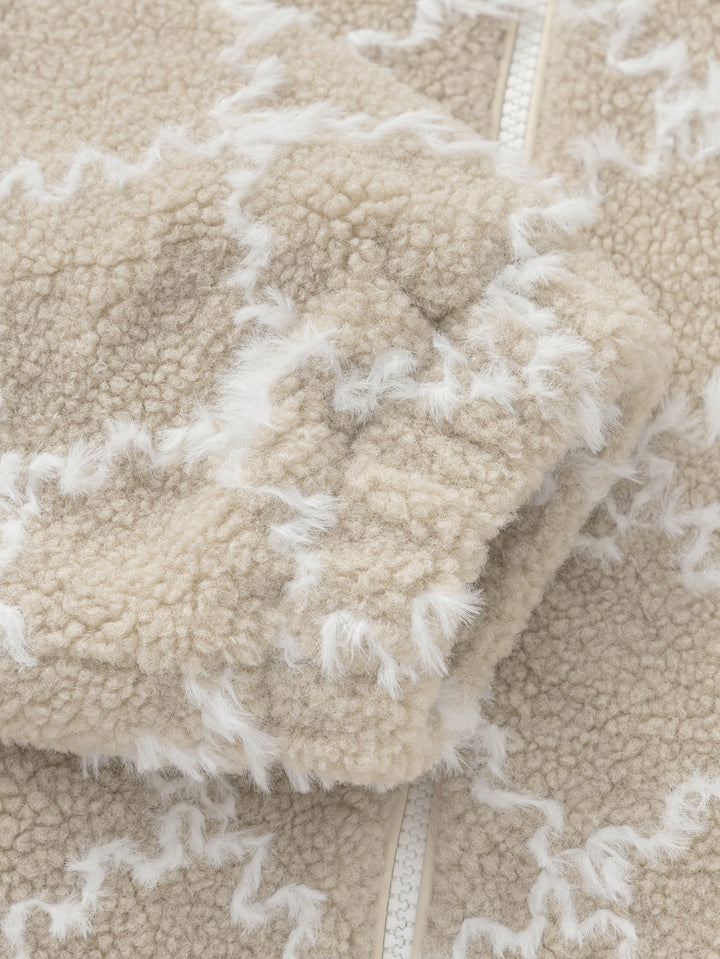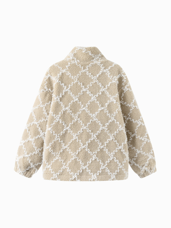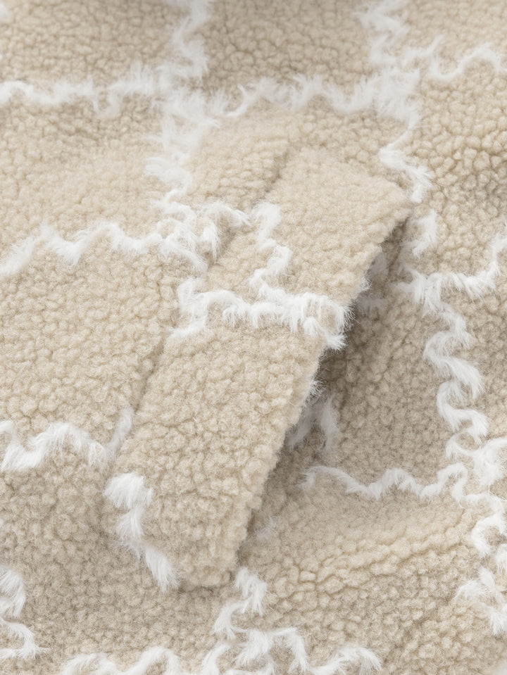 Stil: Quiltad plyschkropp, färgade accenter för uppmärksamhet; lös, något tappad axel; stativkrage ger värme.
