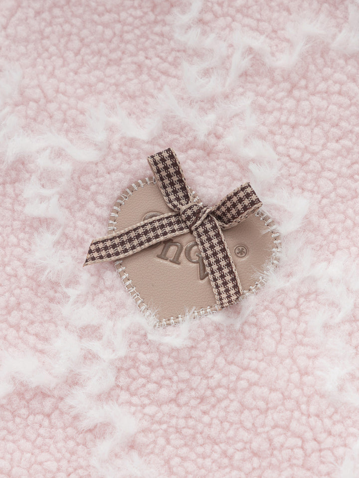 Detalj: Främre hjärtaemblem med rosett; skiktad visuell effekt; högkvalitativ, skolvänlig stil.