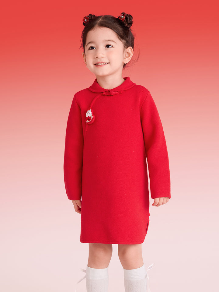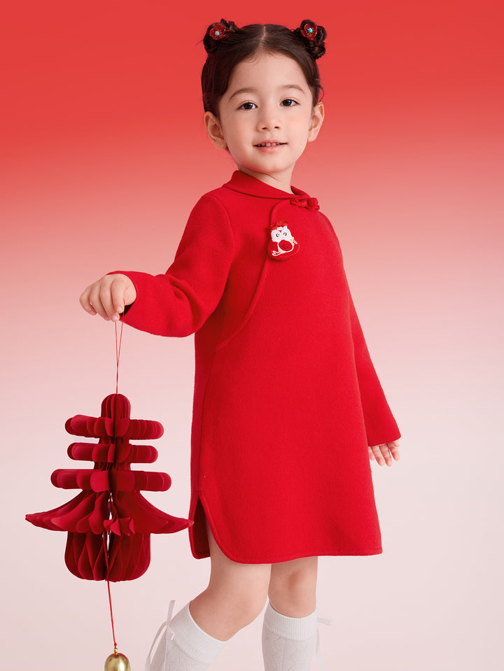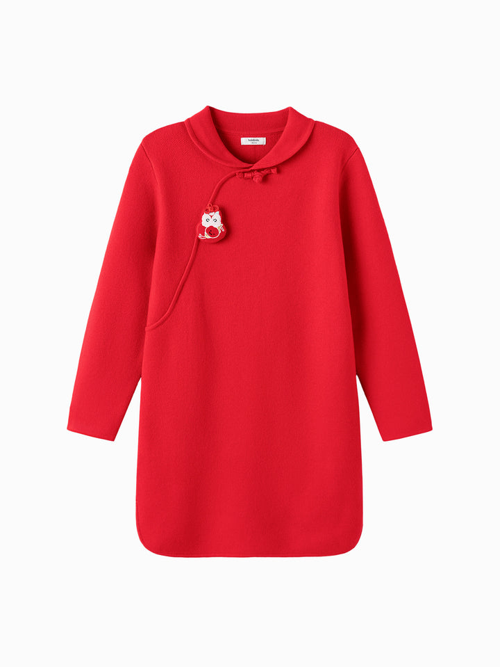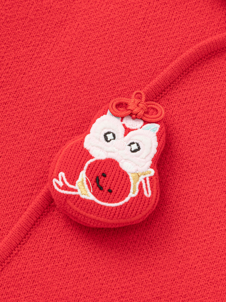 Nyårsklänningen "Double Blessings and Fortune" är gjord av noga utvalt bekvämt bomullsgarn, med en babymjuk touch och hudvänlig mjukhet. Den har rena handvävda knappar och rena handvävda fållar, strävar efter utsökthet. Det vadderade kalebassbroderiet på bröstet är utsökt utformat och dess runda form symboliserar det nya årets välsignelser.