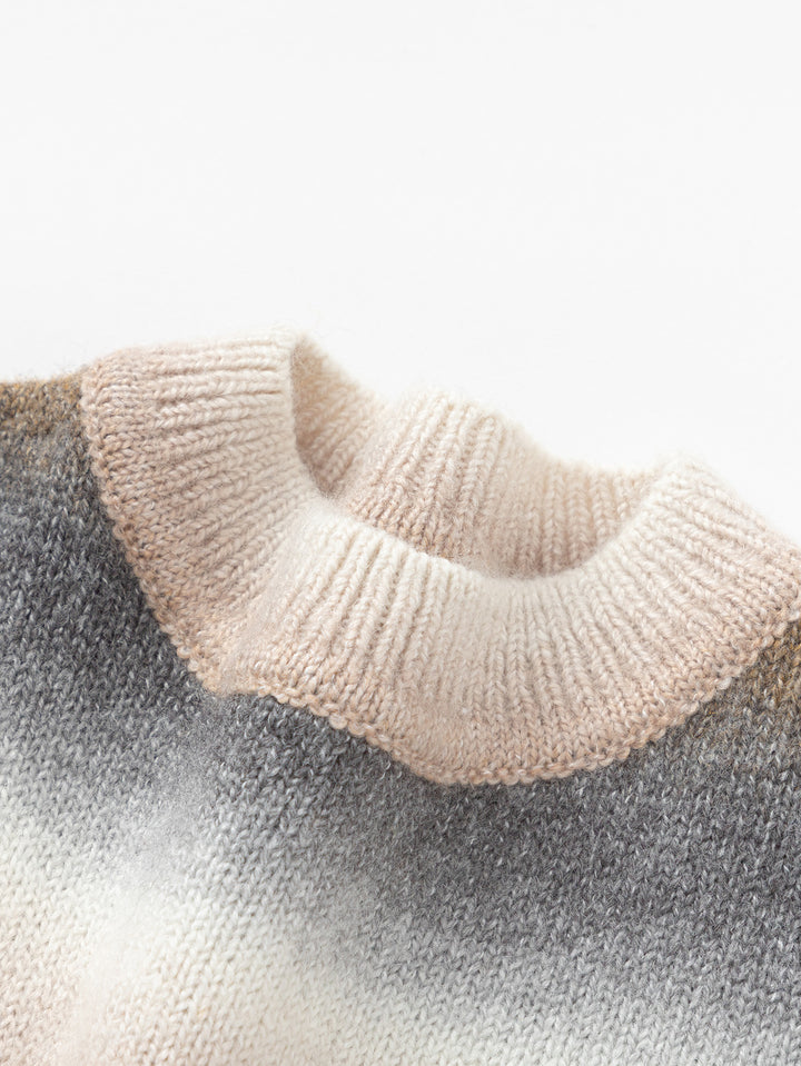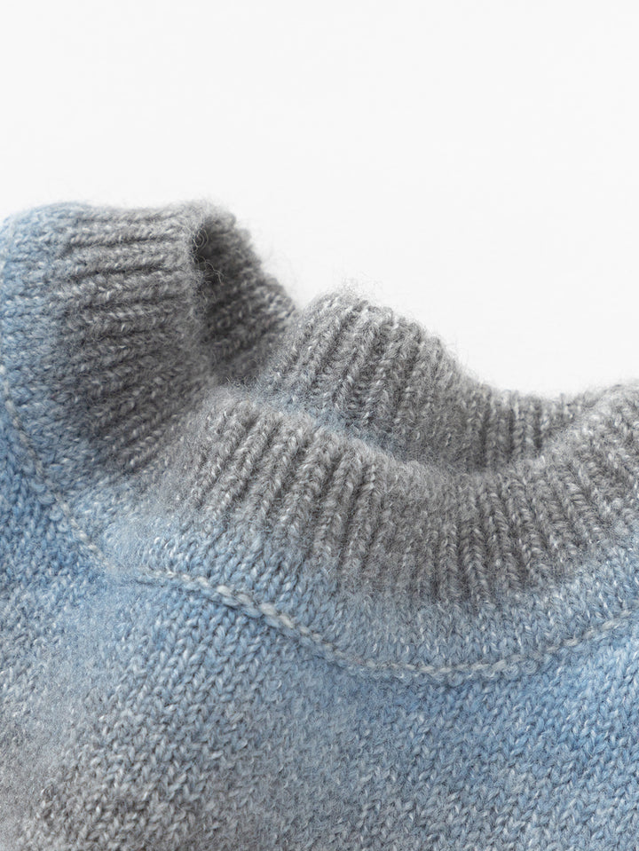 1> Chiếc áo len cổ giữa này có màu gradient đỏ cam và gradient xanh xám, mang đến cho các bé trai vẻ ngoài sành điệu và tinh tế.