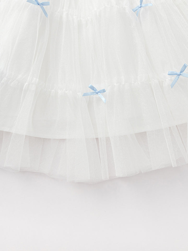 Classic round neck, simple and generous, fluffy and dreamy mesh skirt, bow decoration, with its own luster, you will instantly become an exquisite little princess when you put it on.